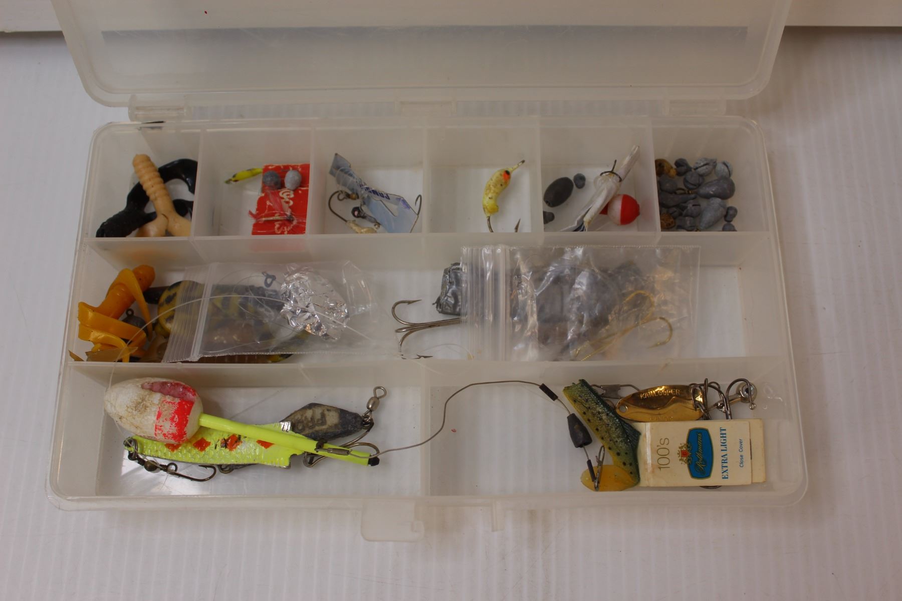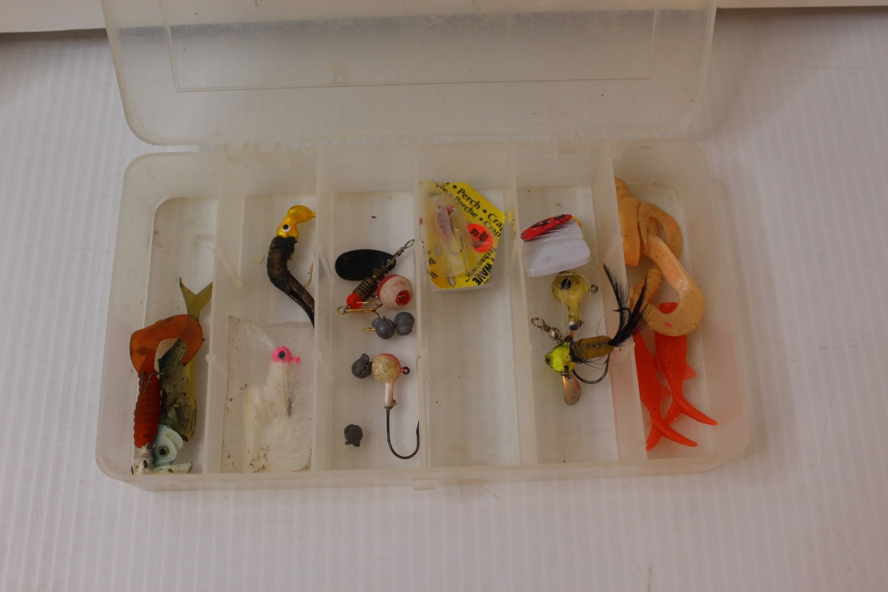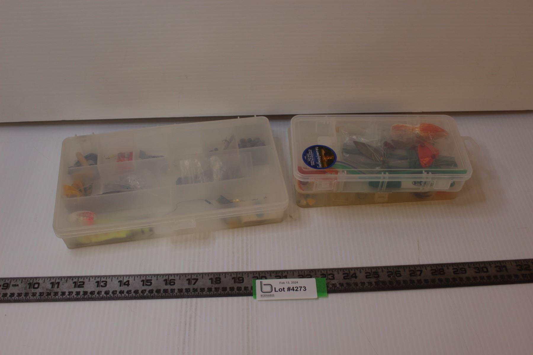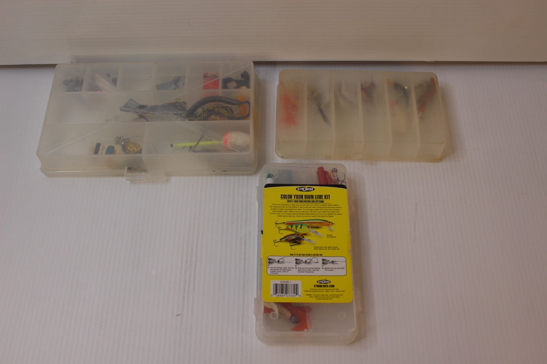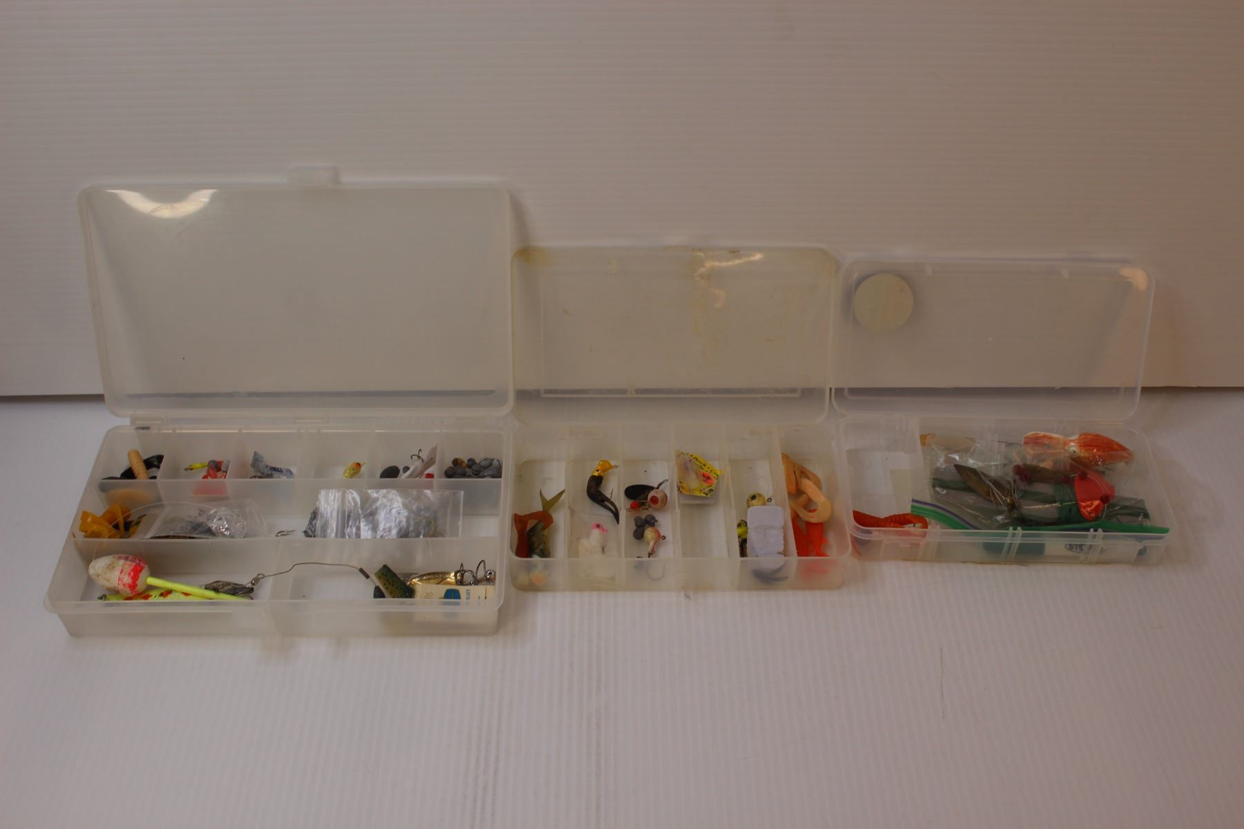 Assortment of Fishing Lures in Three Compartmentalized Containers