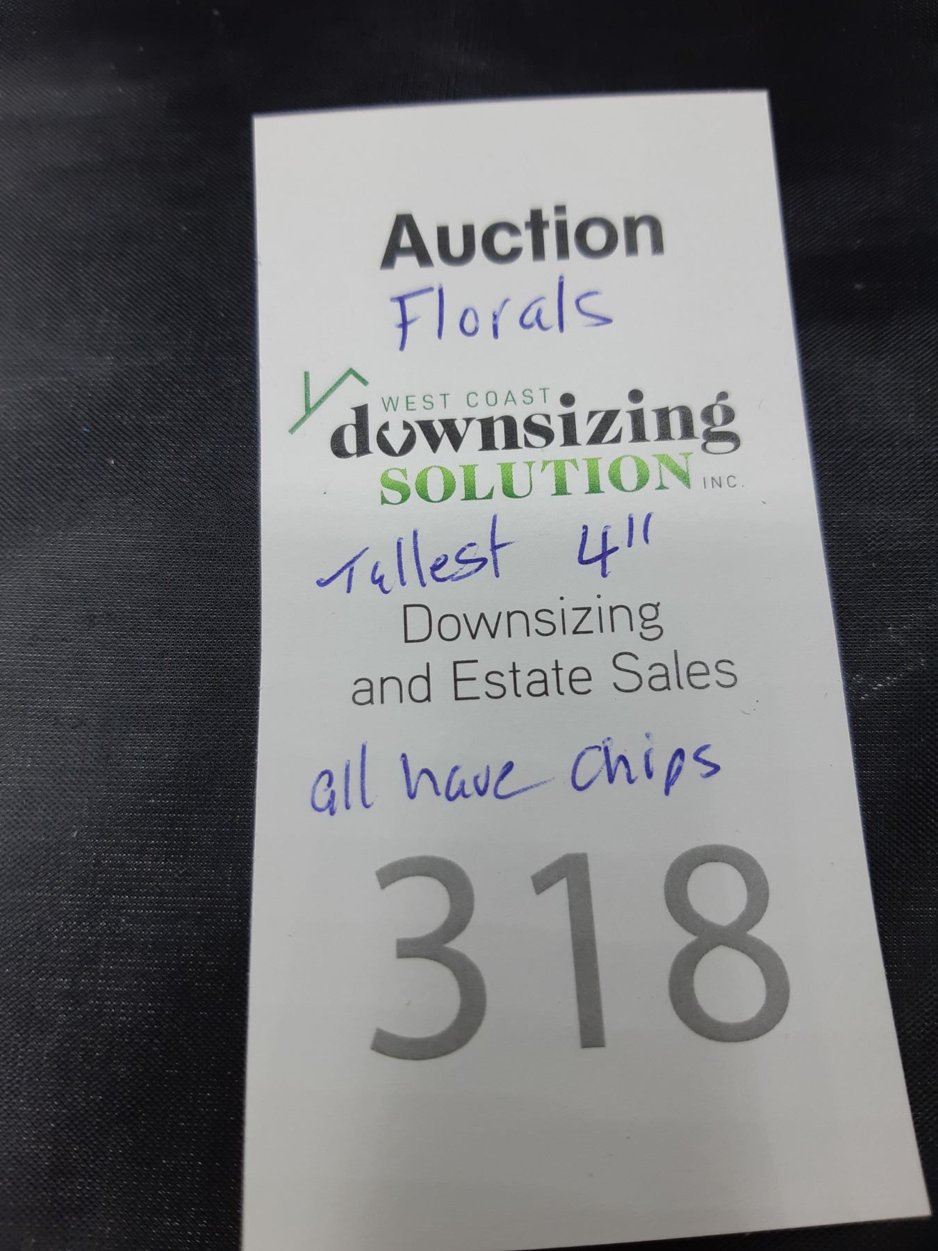 Assortment of florals all have chips. Bring packing material and pickup at 9 am