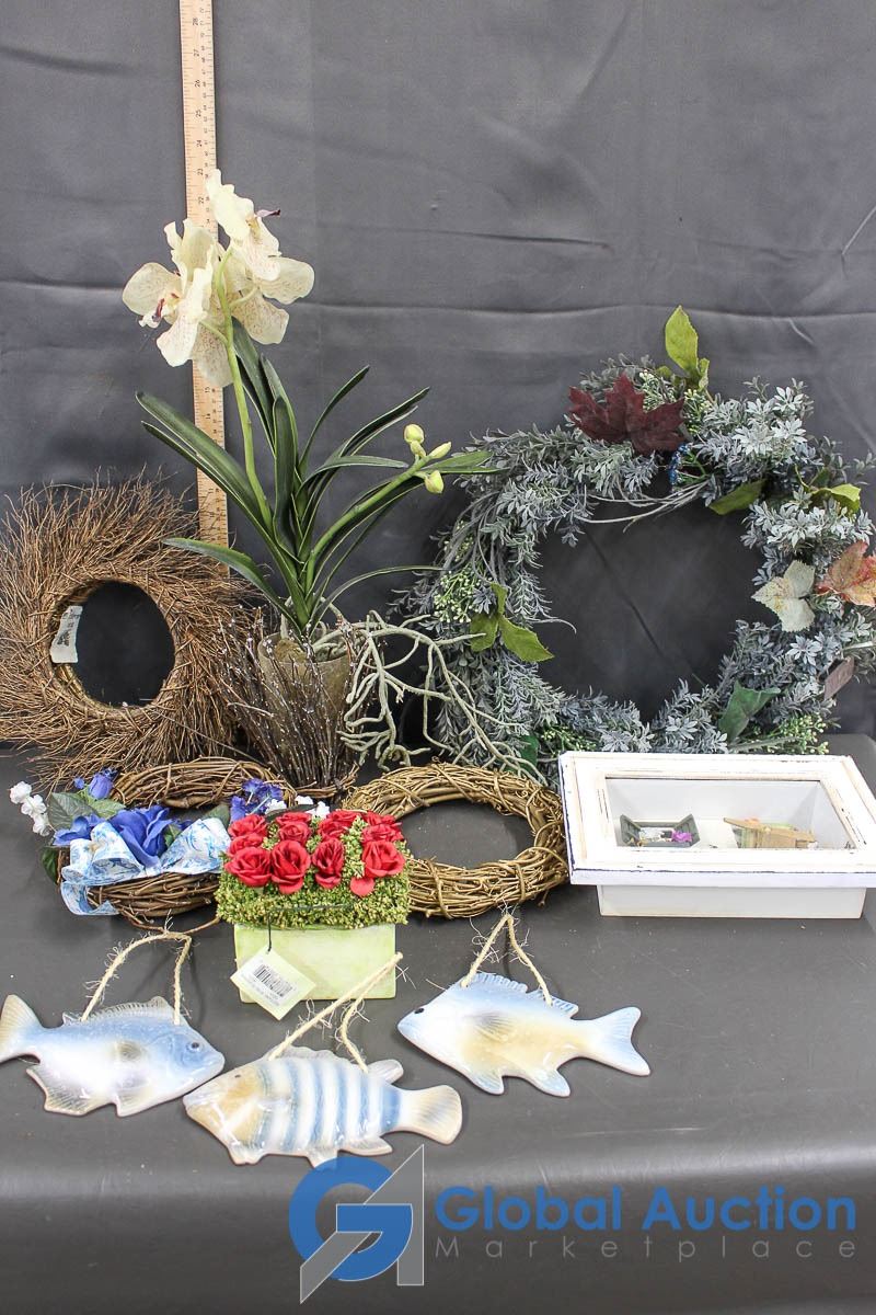 Assortment of Garden Wreaths, Shadow Box, & Floral Decor
