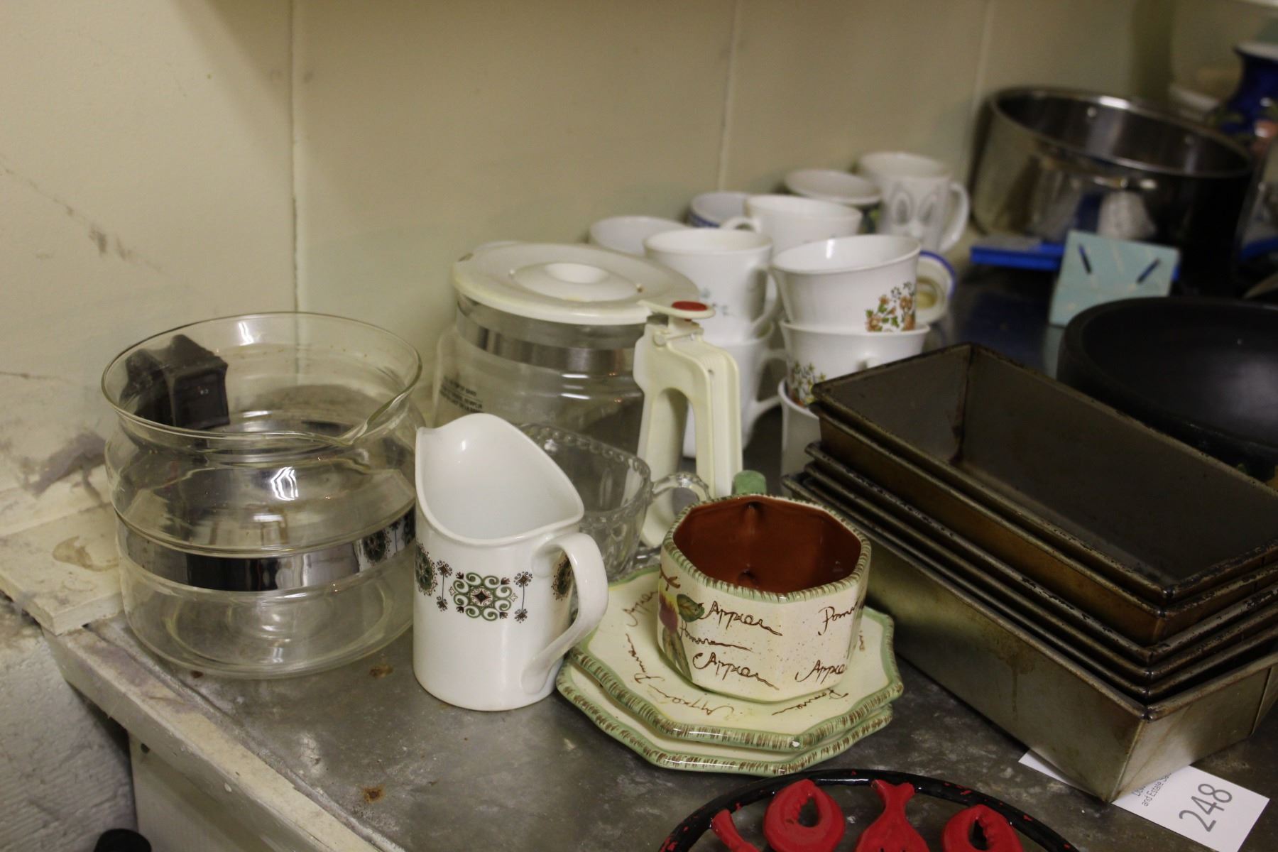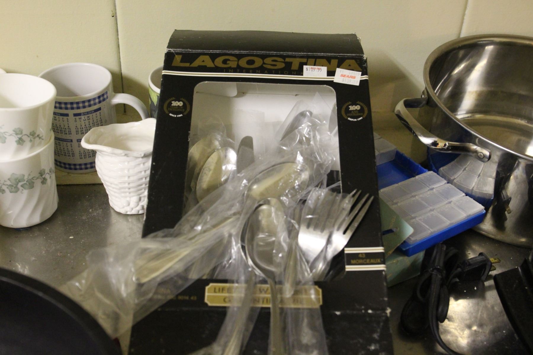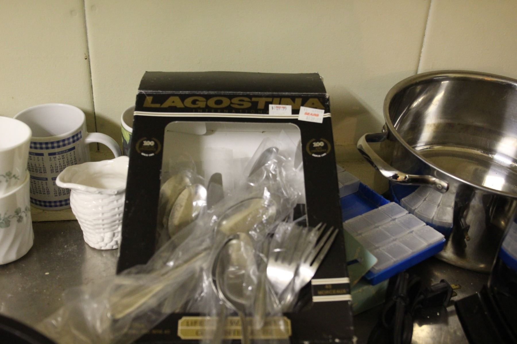 Lot includes Lagostina Cutlery set for 6, vases, mugs, coffee pots, Ekcoloy baking pans and other miscellaneous items. Bring packing material Pickup at 9:00 - 10:00 am
