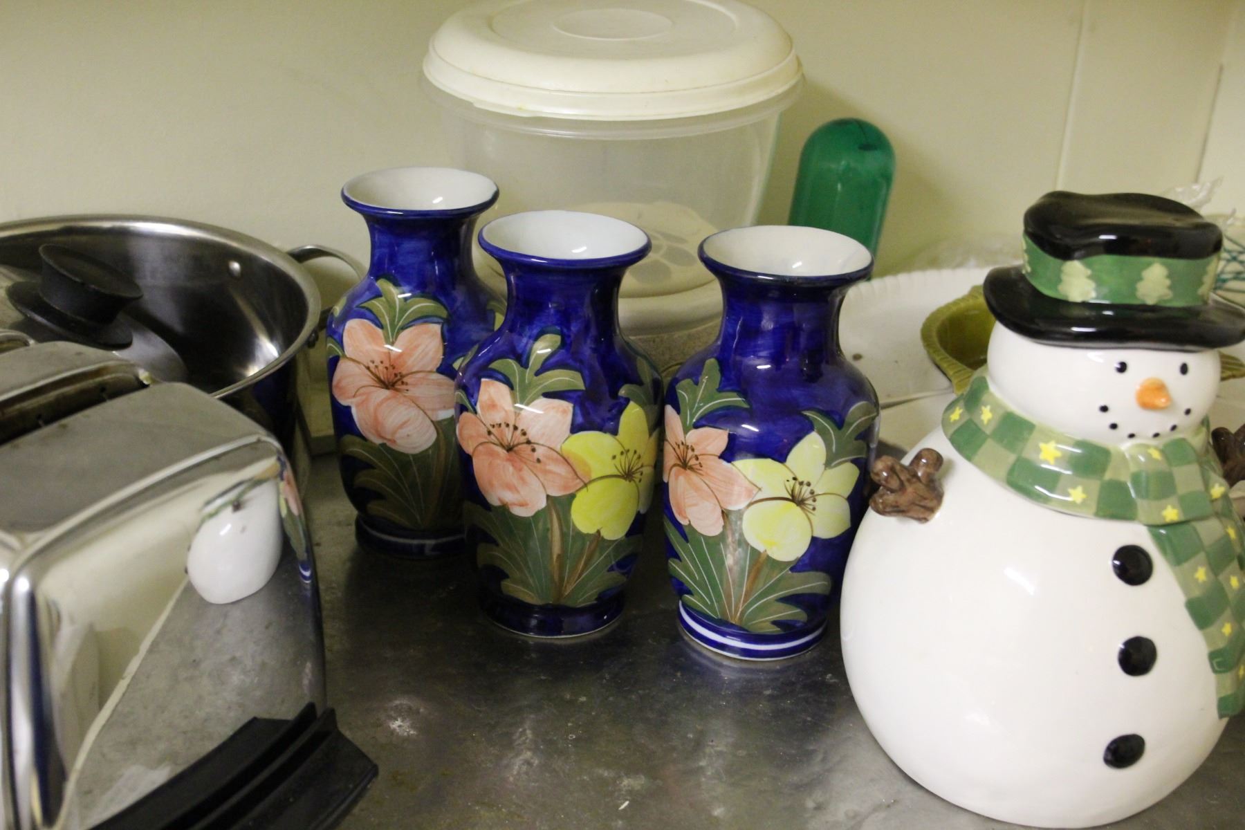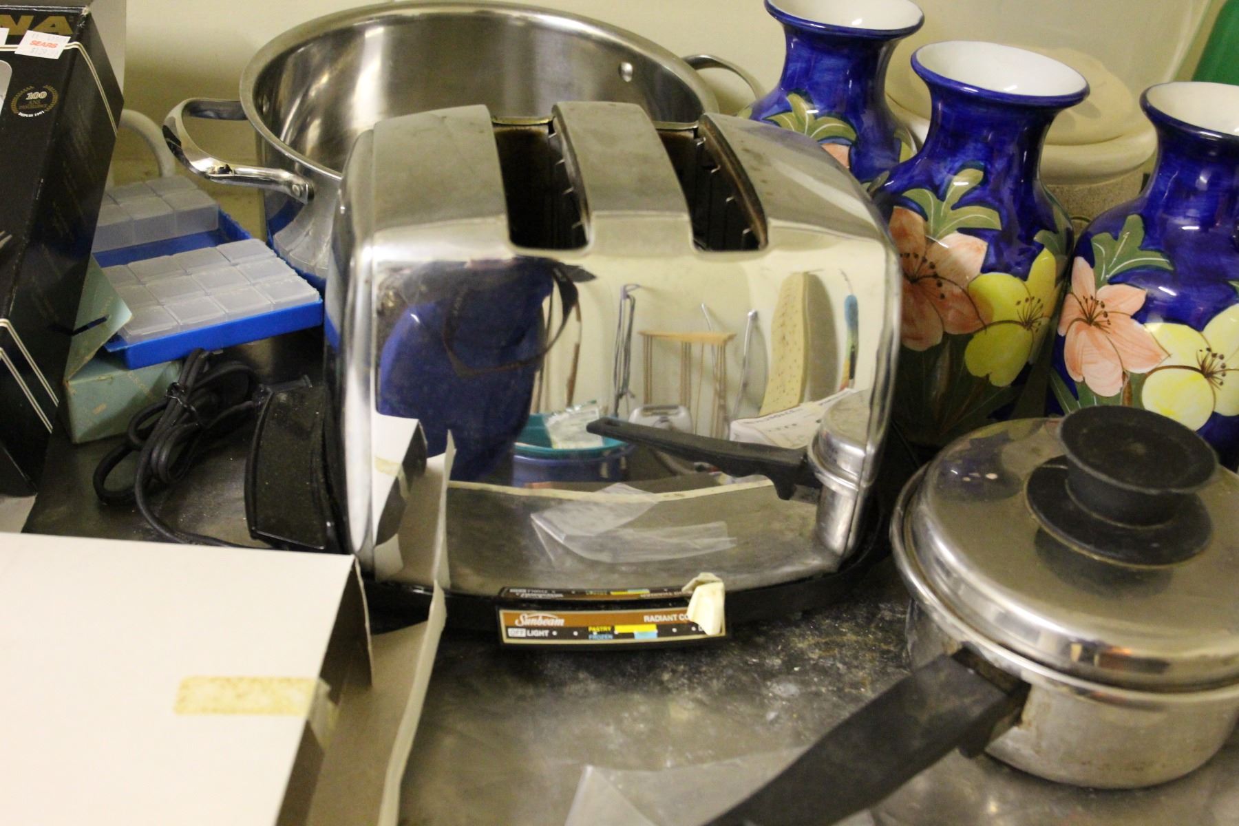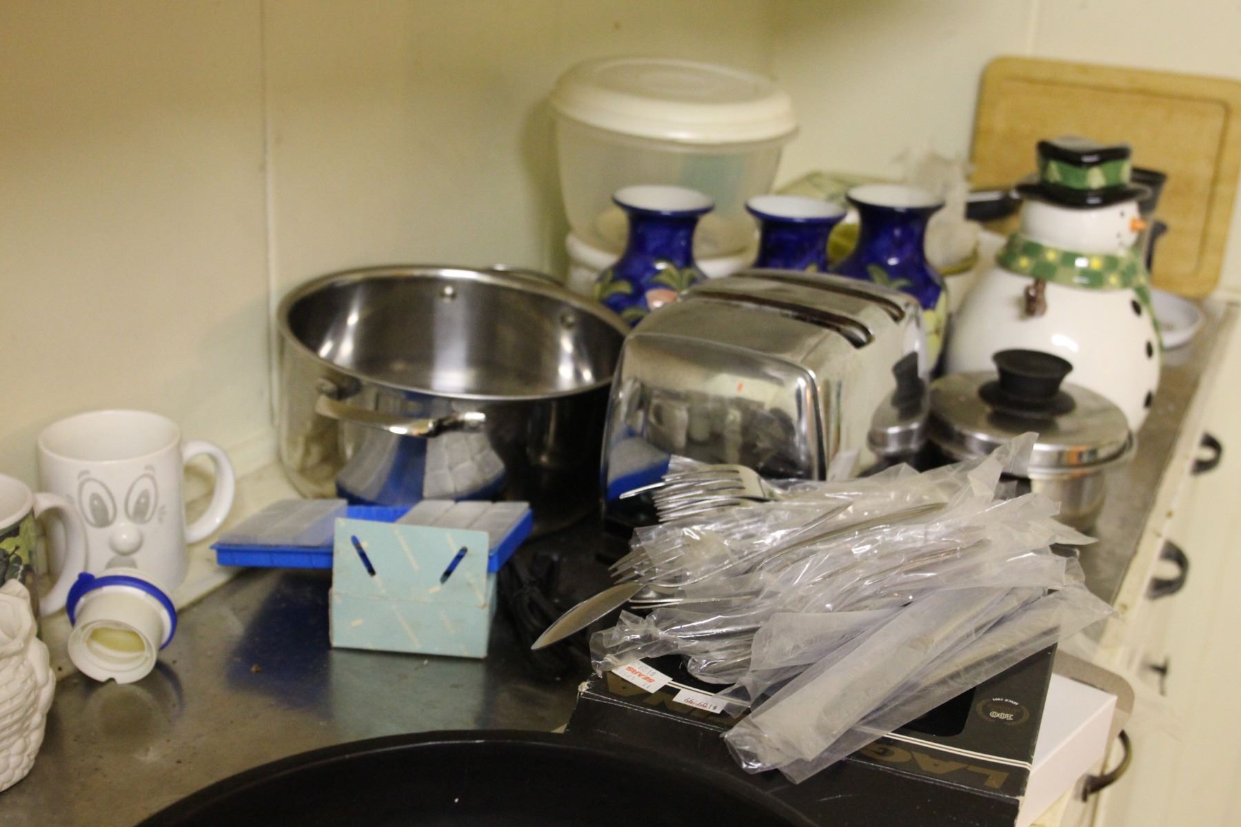 Lot includes Lagostina Cutlery set for 6, vases, mugs, coffee pots, Ekcoloy baking pans and other miscellaneous items. Bring packing material Pickup at 9:00 - 10:00 am