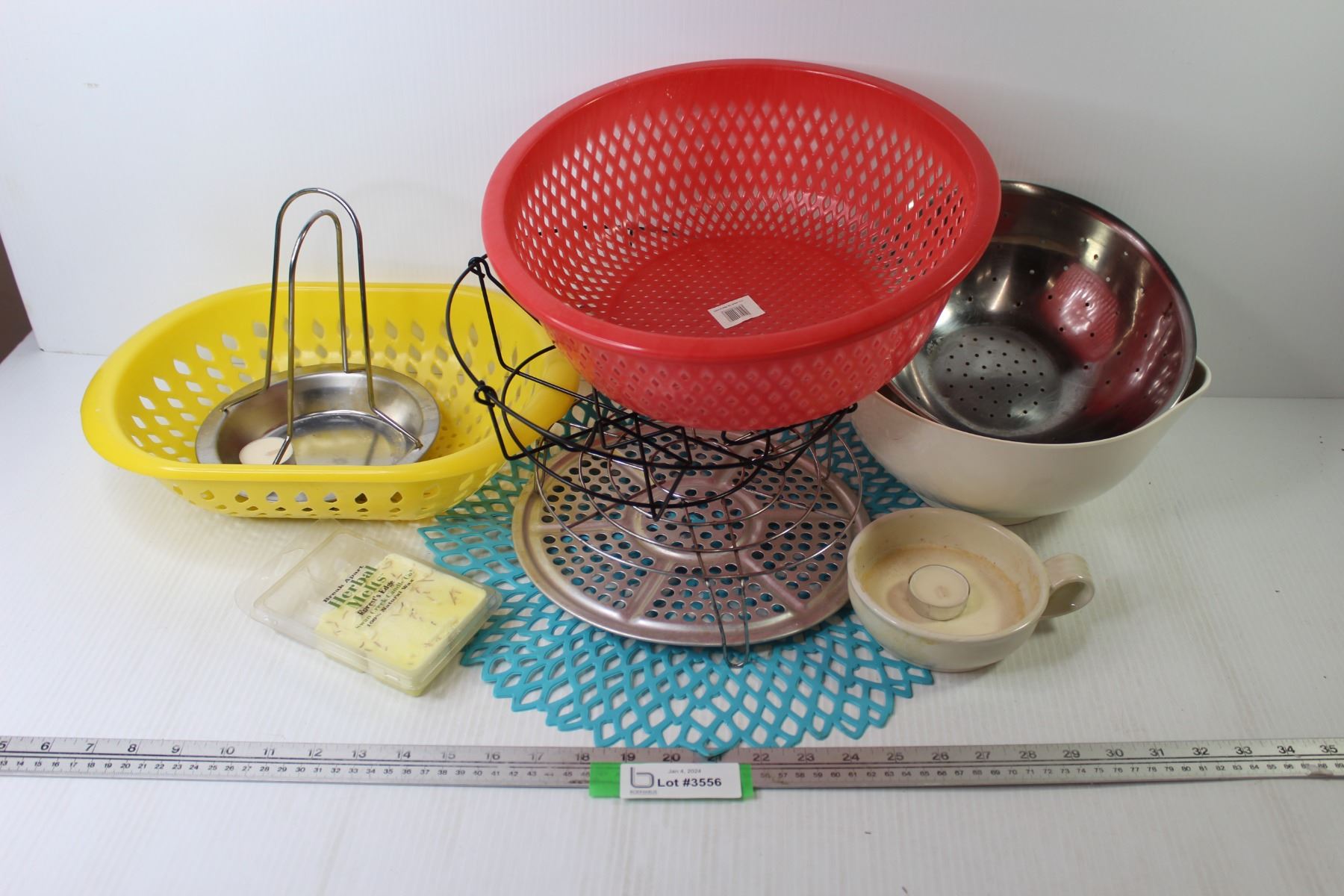 Assortment of Kitchen Ware - Wax - Strainers - Bowl
