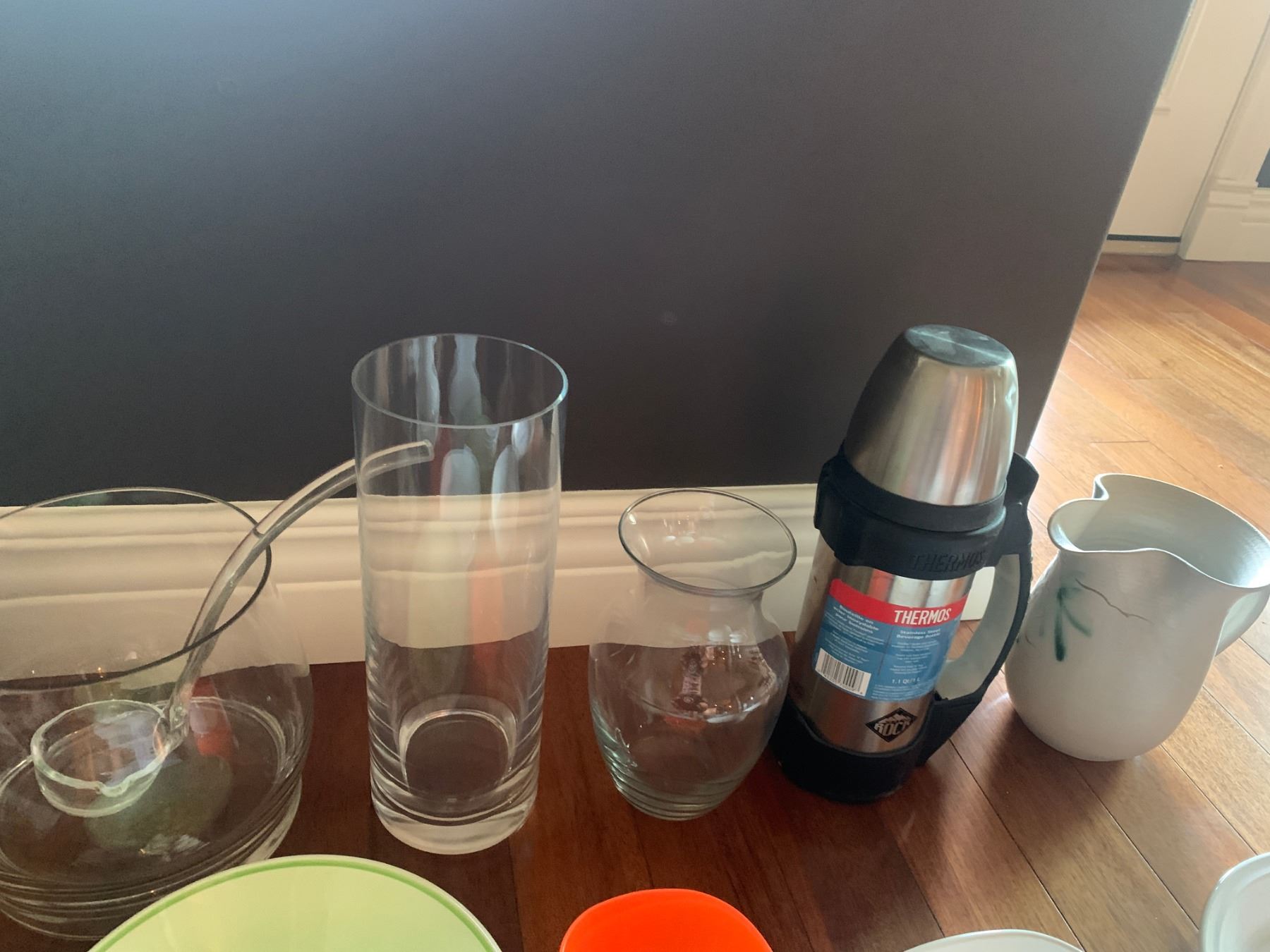 Including Thermos, 2 x Corning ware dishes, Mikasa bowl/saucer set, punchbowl w/ spoon, plates, bowls, and more!