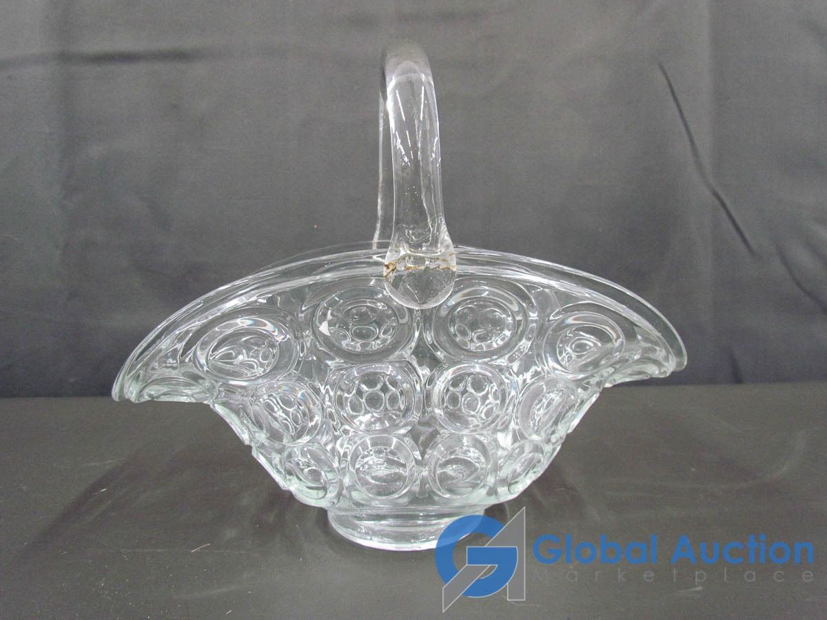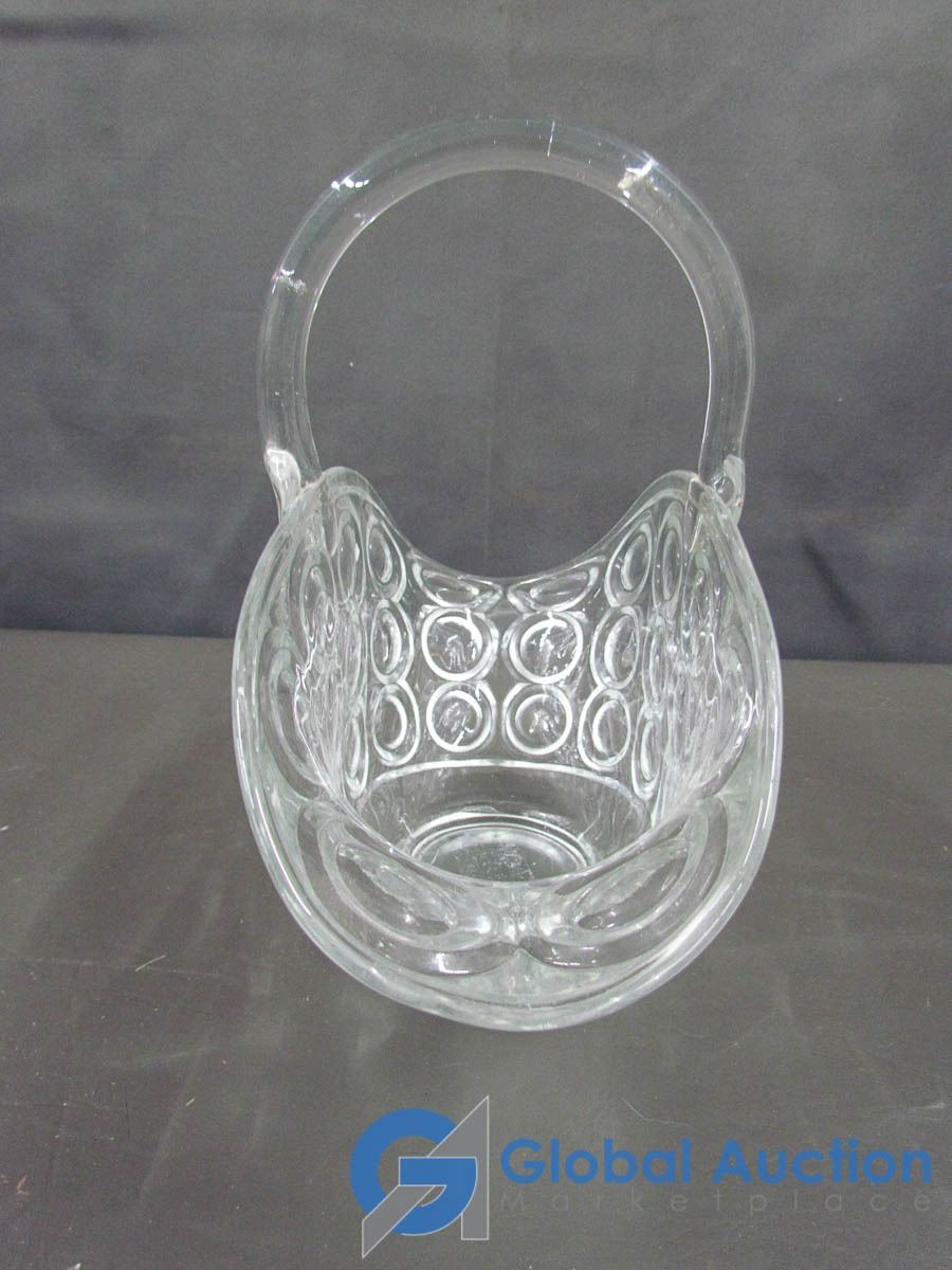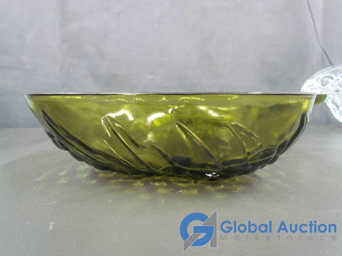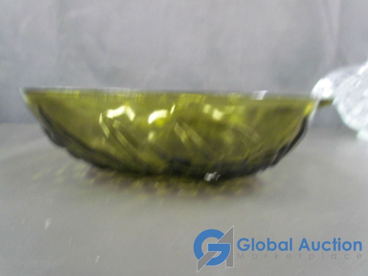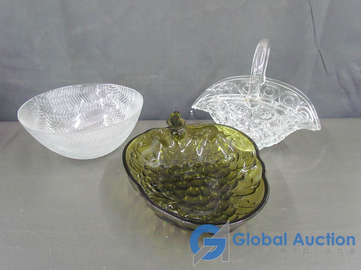 Green Colored Fruit Shaped Bowl, Glass Basket, & Large Glass Bowl