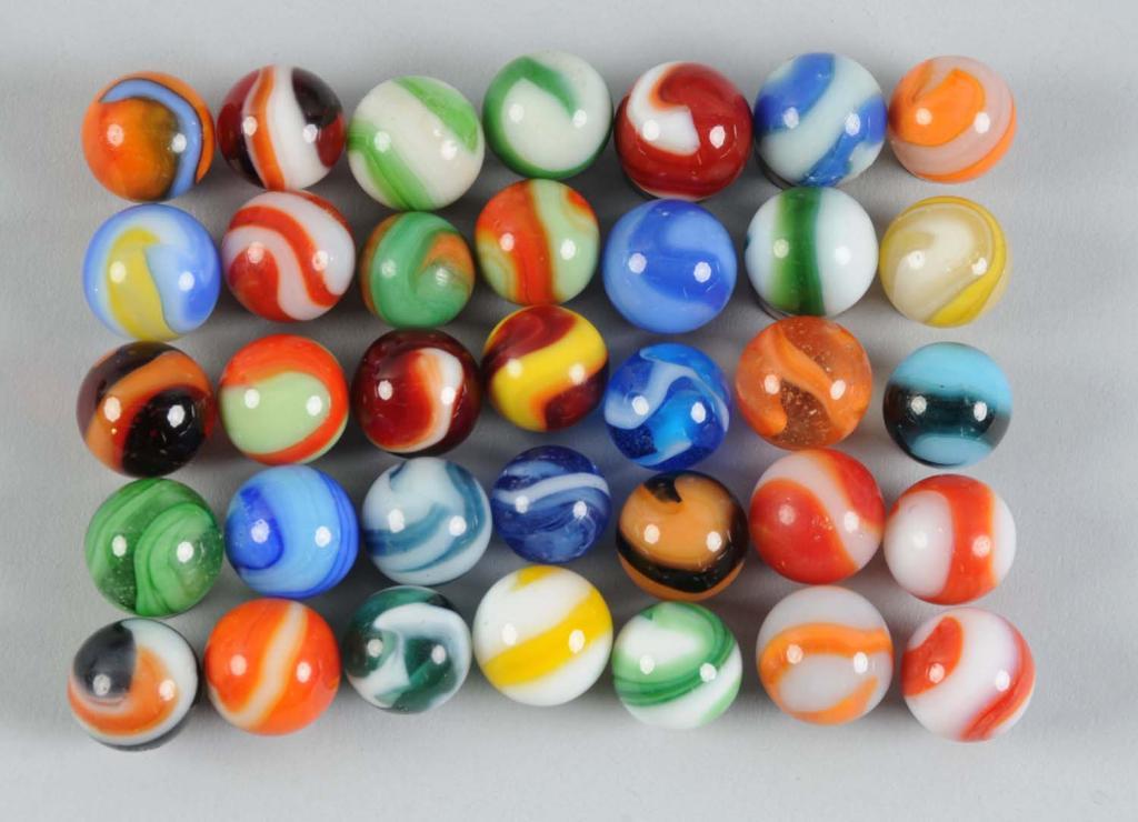 Includes approximately 139 marbles. Not all pictured. Condition (9.7+). Size Largest: 11/16" Dia.