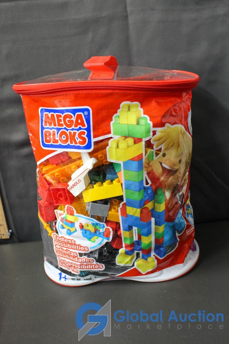Assortment of Mega Blocks, Stool & Large Mega Block Mat