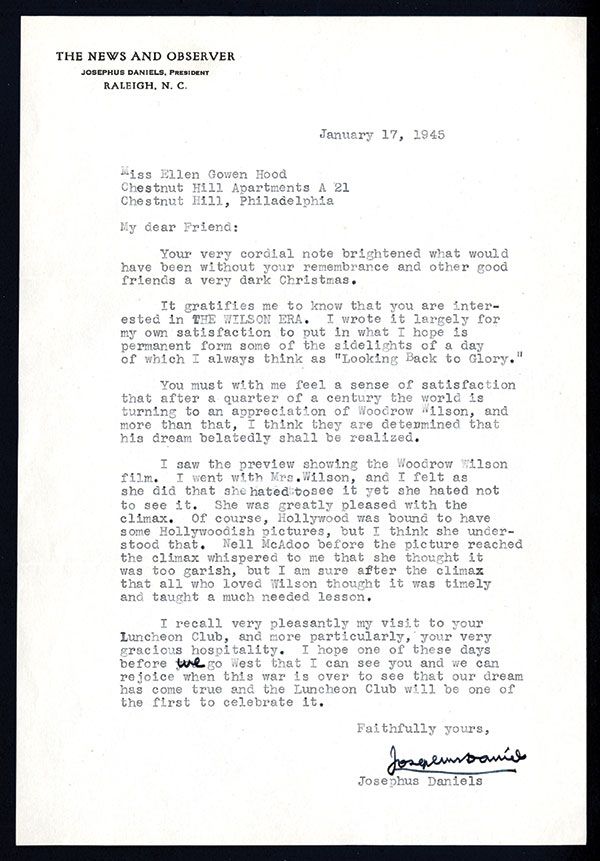 Lot of 5 Miscellaneous Autographs. 1). 1945, Josephus Daniels signed letter on his personal letterhead, VF condition. Daniels (1862-1948) was a well known newspaper editor and publisher and also the 41st Secretary of the Navy. 2). 1944, Bernard DeVoto signed letter on his personal letterhead, DeVoto (1897-1955) was an American writer who specialized in the history of the American West. 3). 1907, Henry Van Dyke, American author and clergyman, signed card, VF. 4). Eddie Rickenbacker signature on card with "Signature", "Address: 10 Rockefeller Plaza New York, New York" type on it, Fine condition. Rickenbacker (1890-1973) is a Medal of Honor Recipient for his 26 "kills" during WW1. Rickenbacker bought the Indianapolis Motor Speedway in 1927 a result of his passion for automobile racing. From the 1930's till the 1960's he headed up Eastern Airlines until after years of decline he was forced from the board. 5). 1941, Eve Curie journalist and humanitarian best known for her biography of her mother, Madame Curie, signed typed letter.