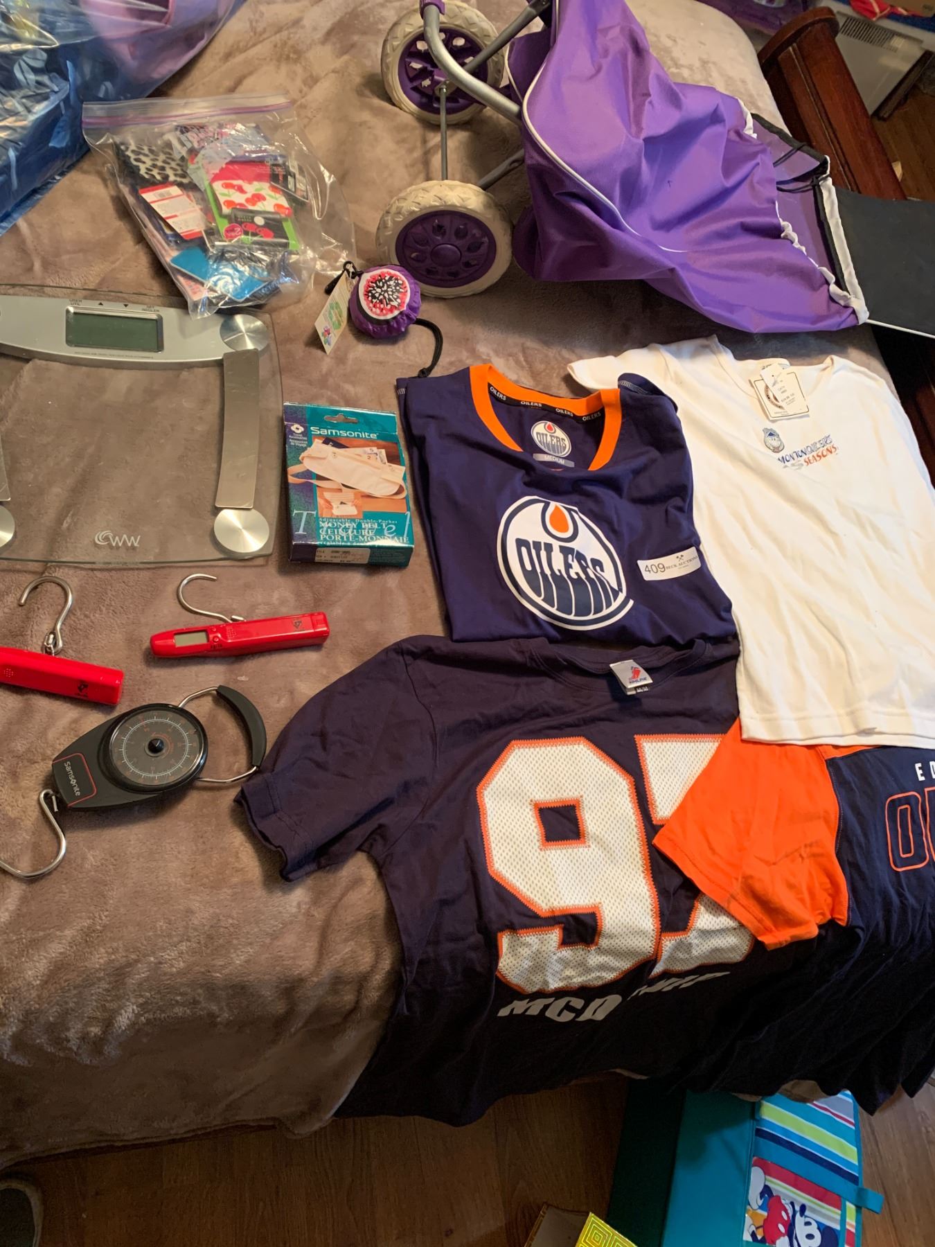 Assortment of Miscellaneous Items - Luggage Scales, Edmonton Oilers Merch, and More!