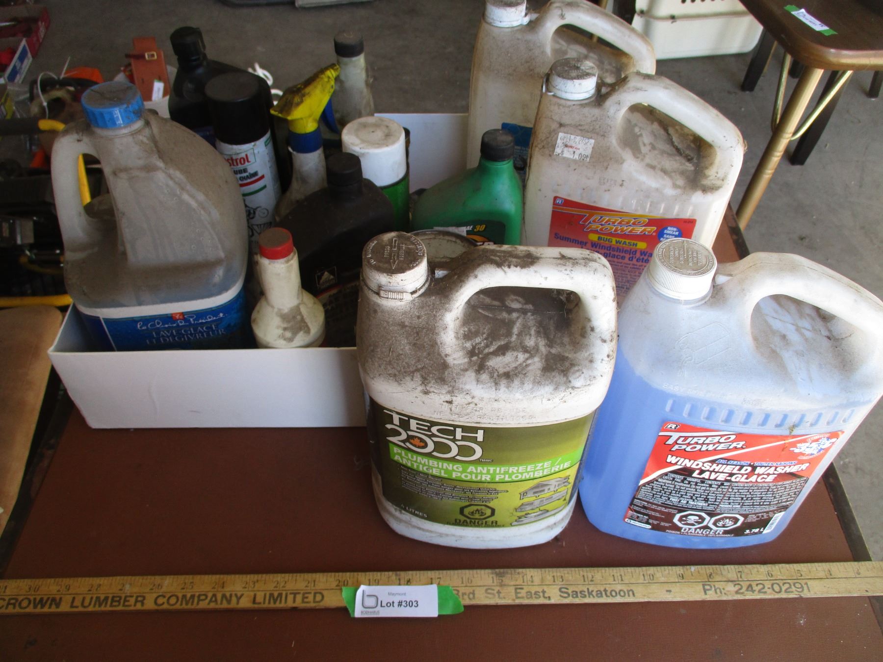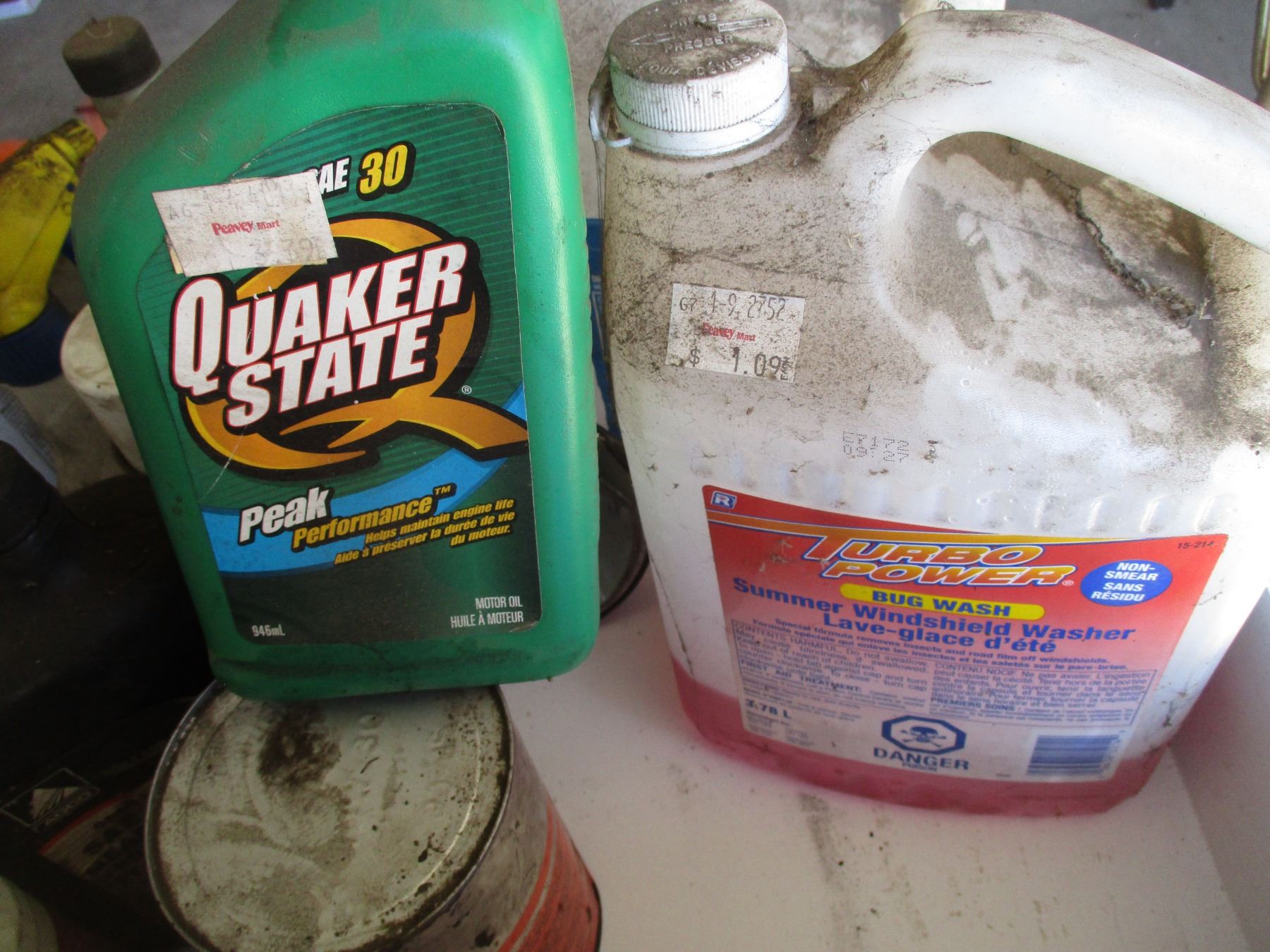 Assortment of Partial Oil Containers, Windshield Washer Fluid