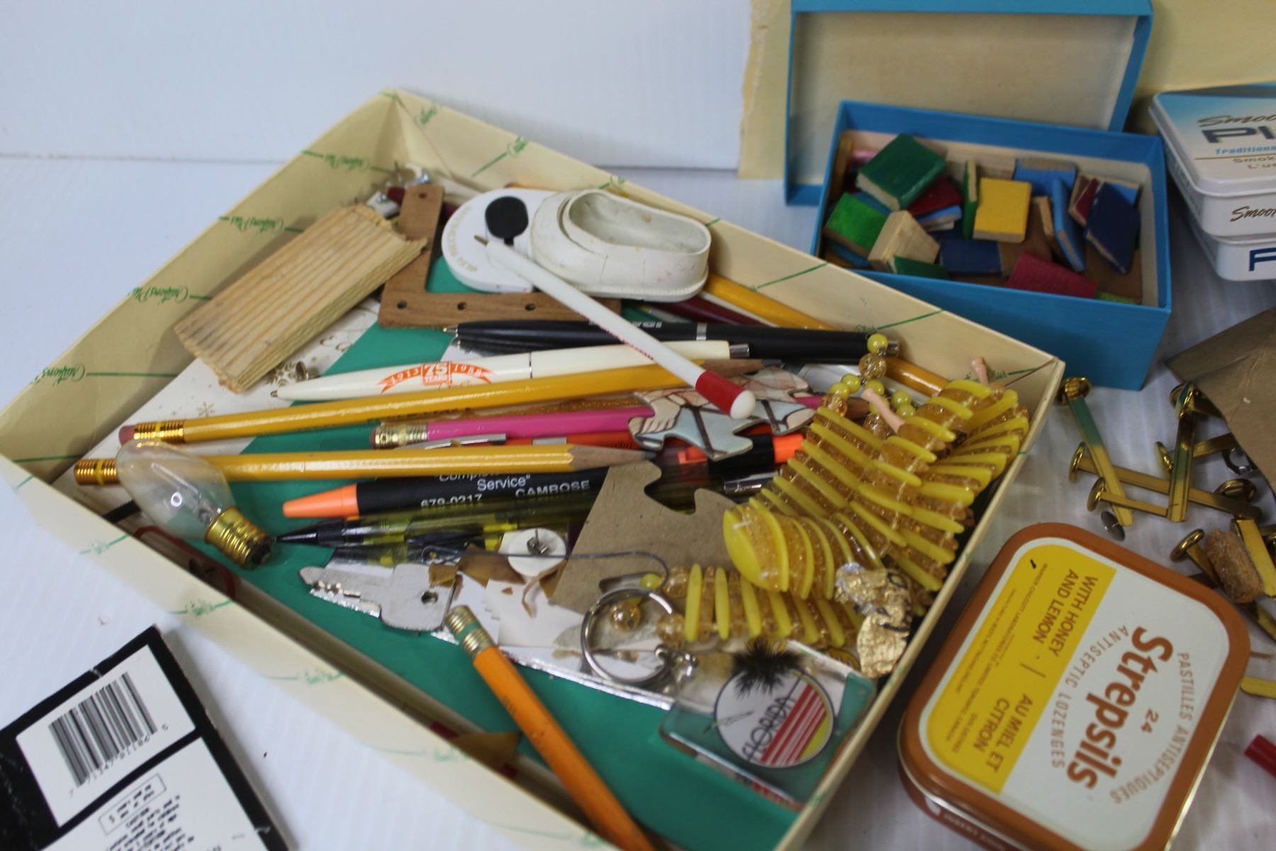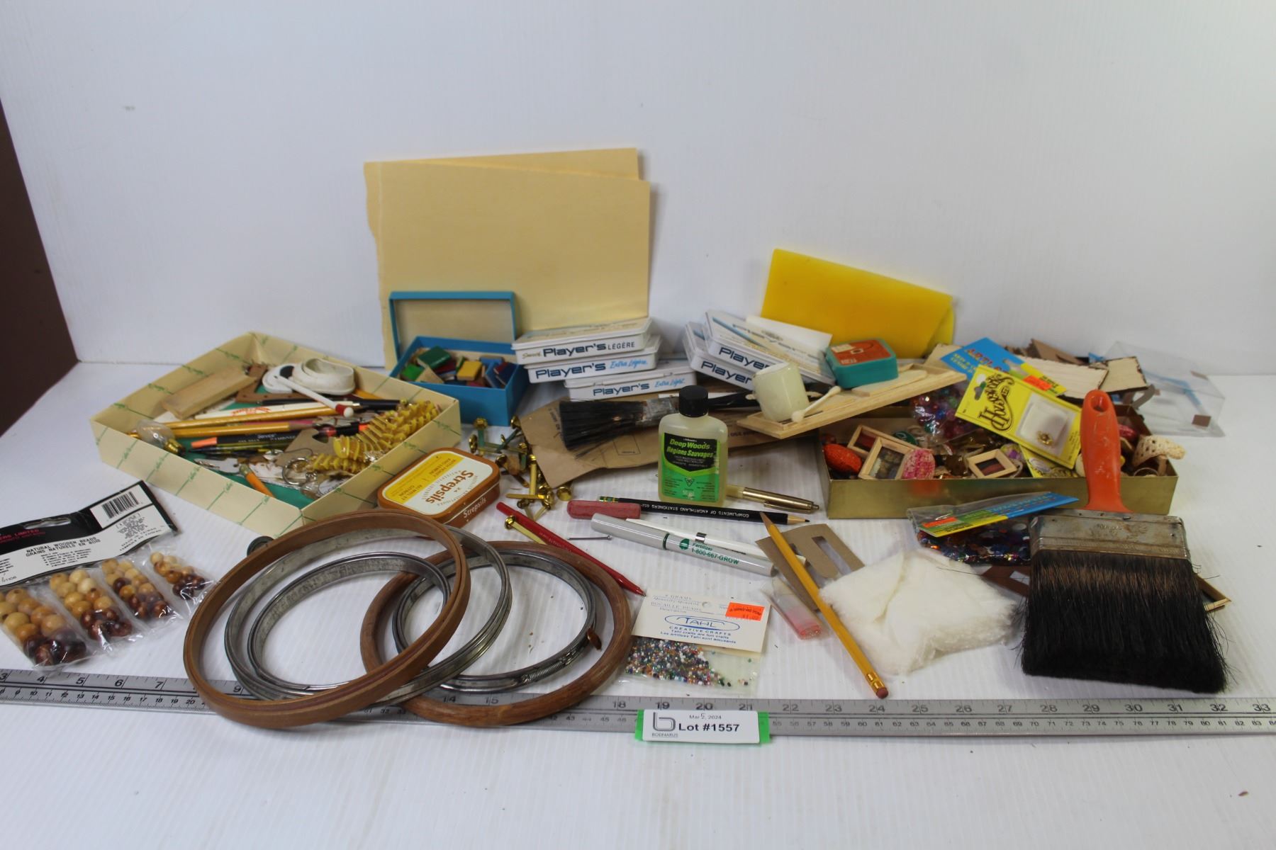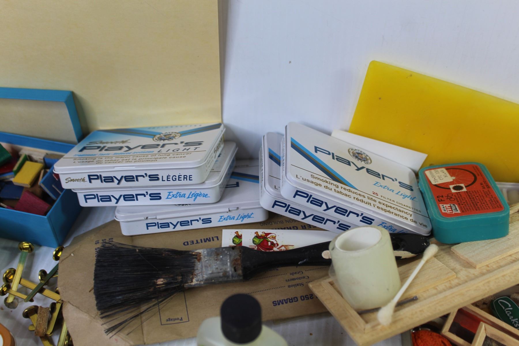 Assortment of Pens & Pencils - Crafting Items - Brush - Players Cigarette Tins - Misc. Items
