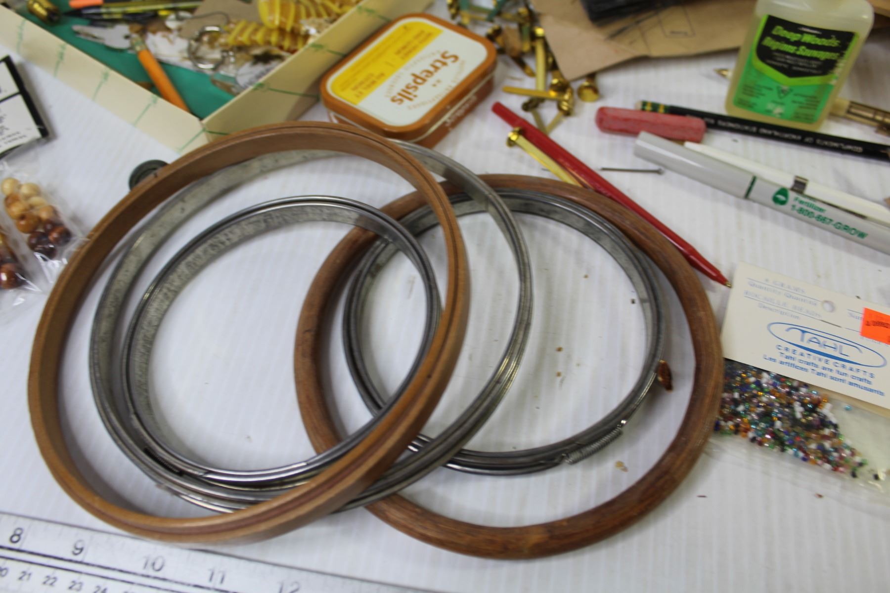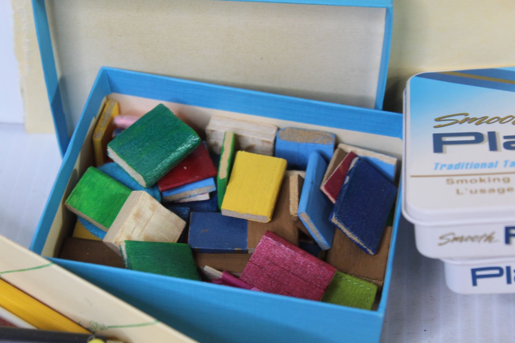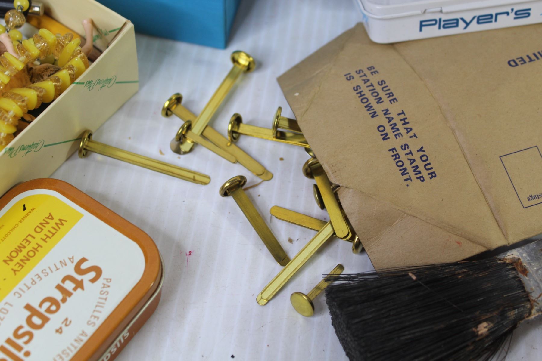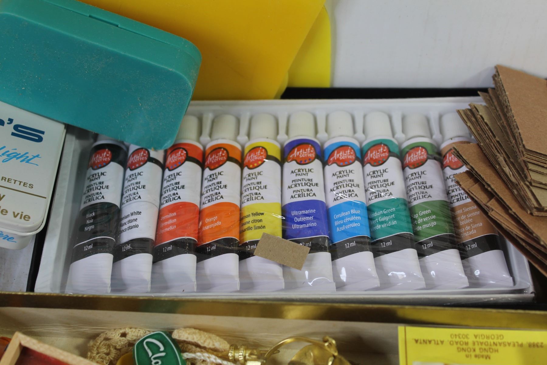 Assortment of Pens & Pencils - Crafting Items - Brush - Players Cigarette Tins - Misc. Items