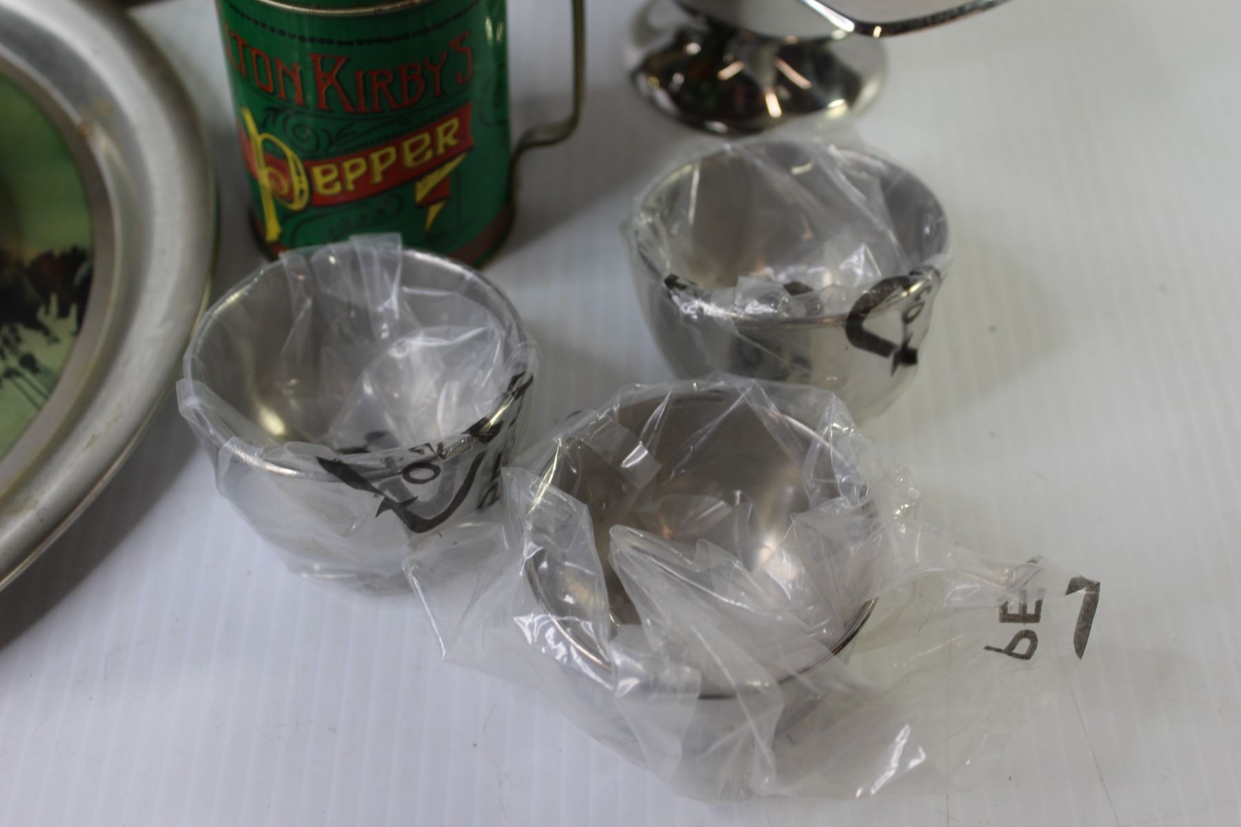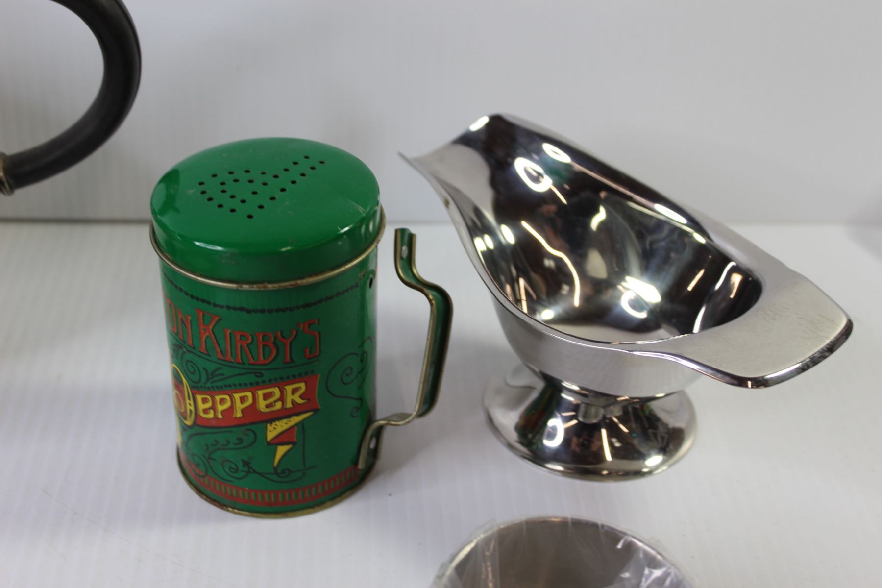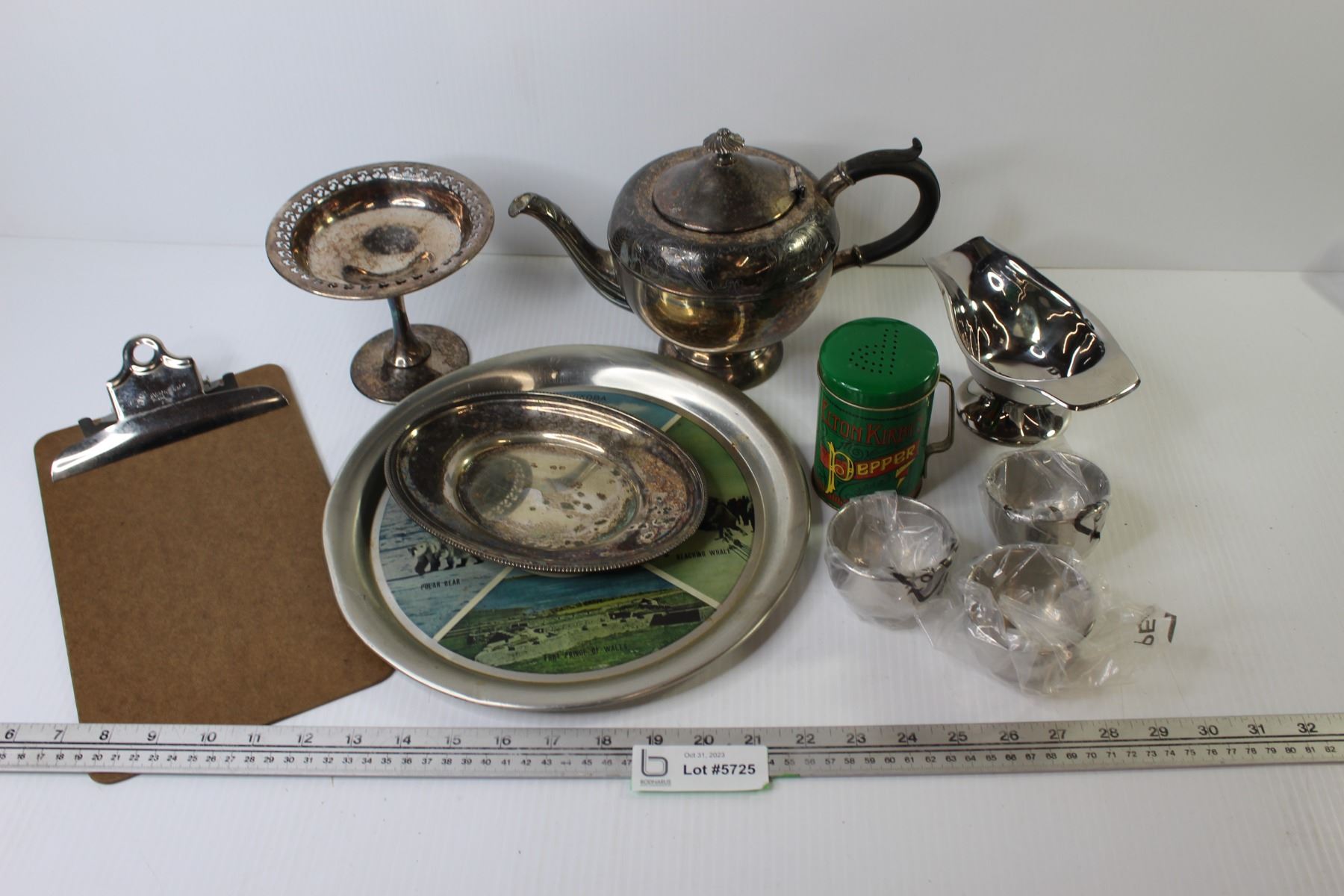 Assortment of Plated & Metal Items - Clip Board - Tray - Tea Pot - Pepper Shaker