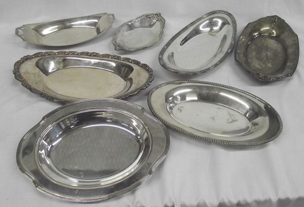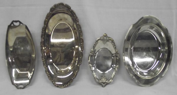 From the Proctor Collection. This gorgeous Assortment of Silver Plate Serving Bowls includes 4 that are stamped on the bottom, and some have ornately decorated rims and edges. The largest measures approx. 14''L x 7.5''w