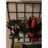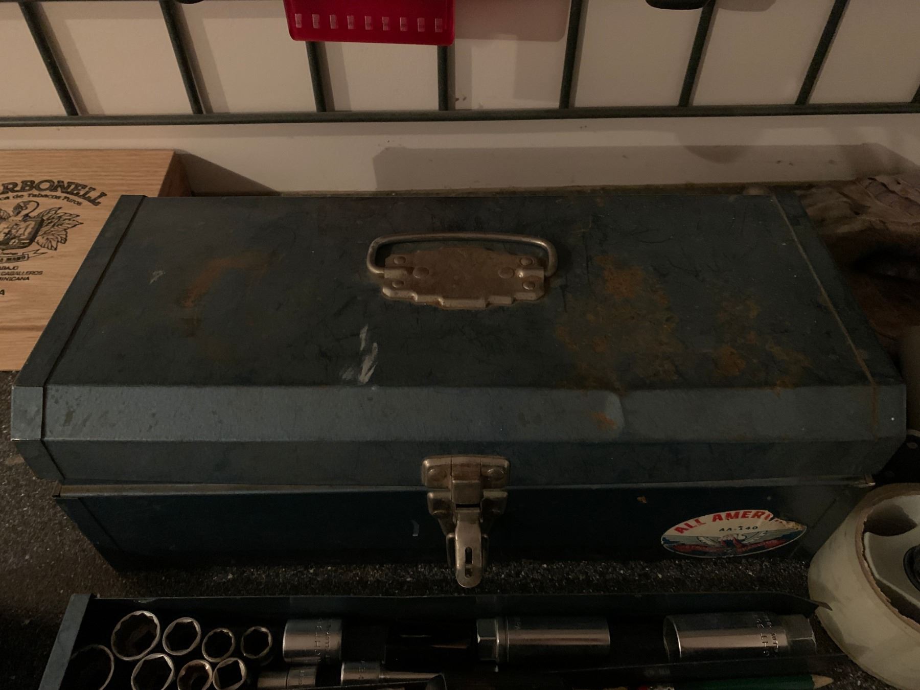 Including brand new Uvex safety glasses, booster cables, 6pc home tool set, tool box full of tools, cigar box, various hand tools, and more!
