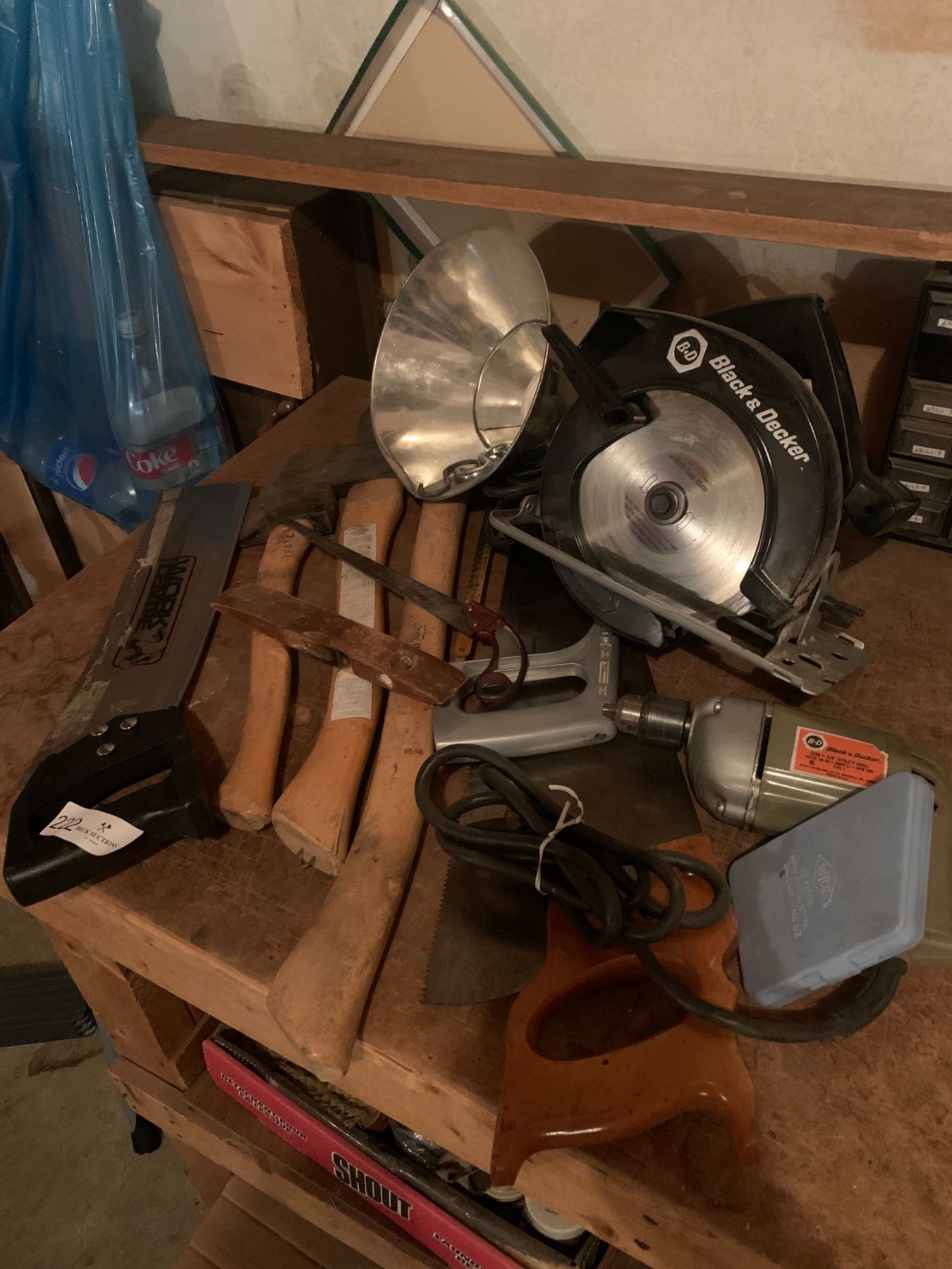 Assortment of Tools - Includes Black & Decker Circular Saw and 3/8" Utility Drill