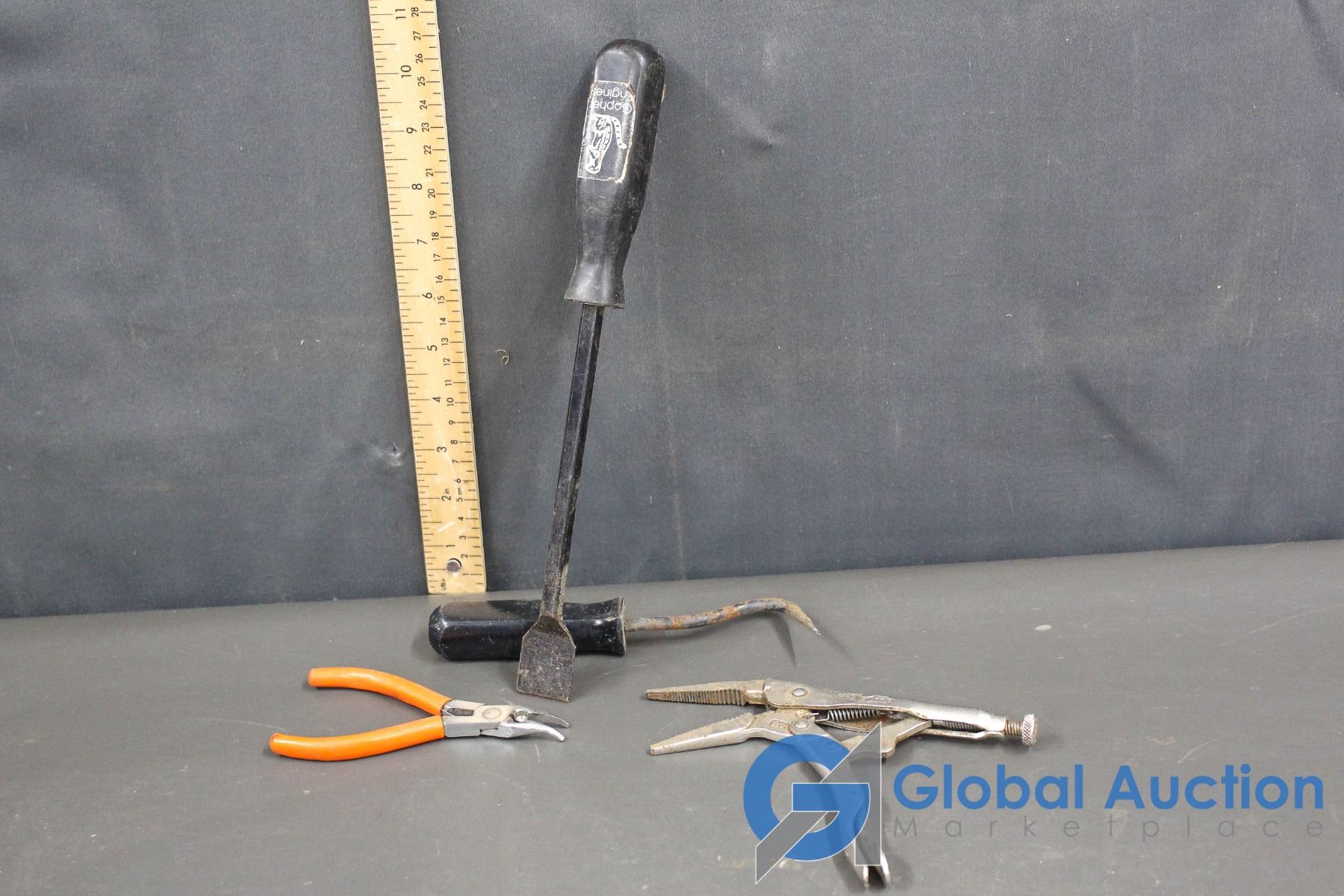 Vise Grip, Gasket, Scraper & Needle Nose Pliers