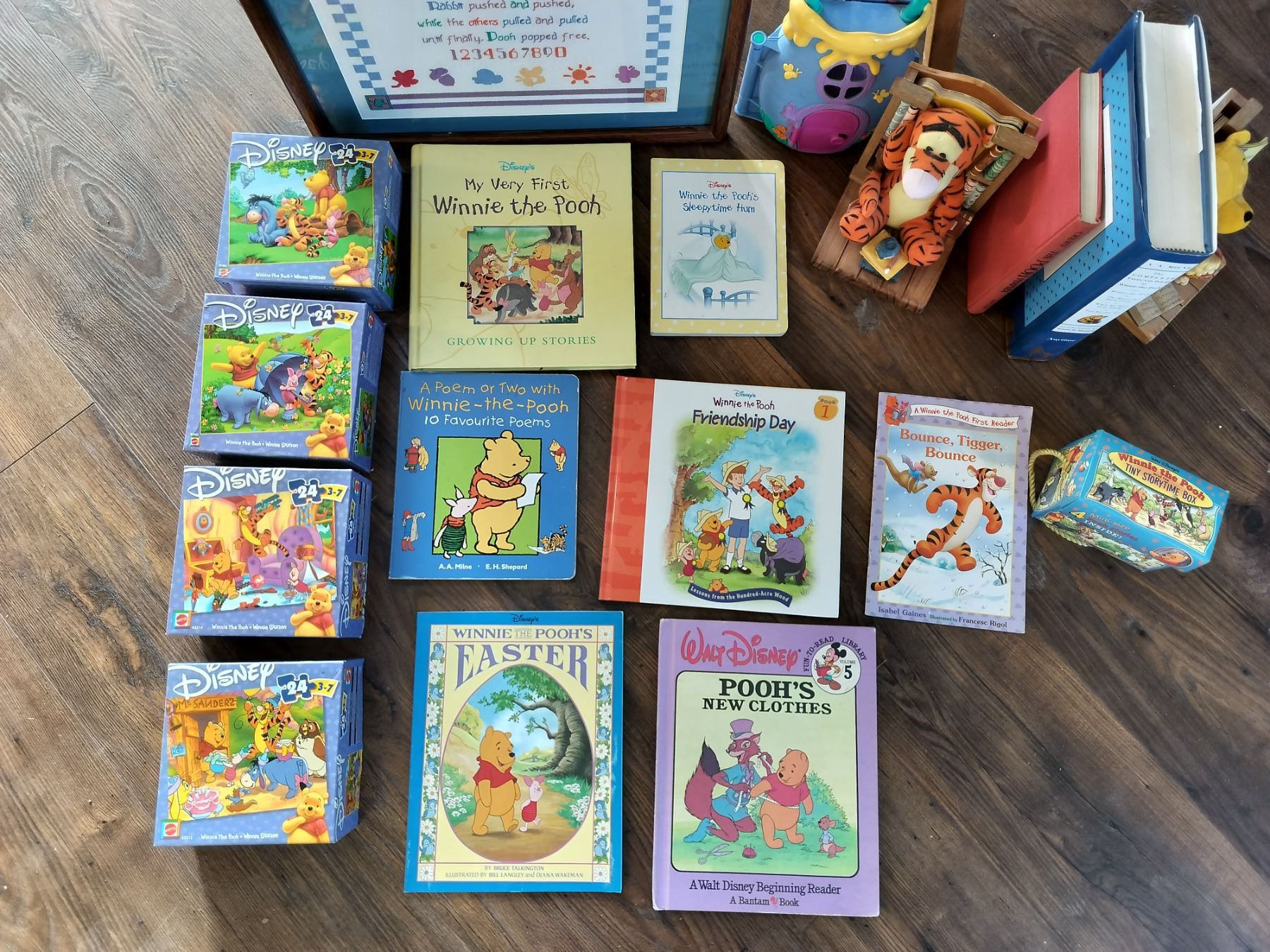 Assortment of Winnie the Pooh Collectibles for Young Children - Includes Needlepoint Sampler!