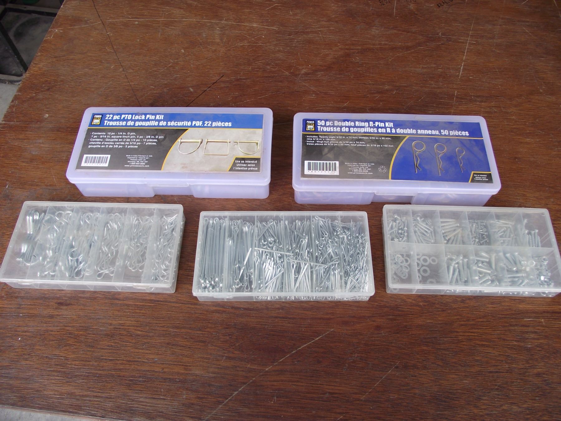 Assortment of pins, 4 boxes, and bolt/screw kit.