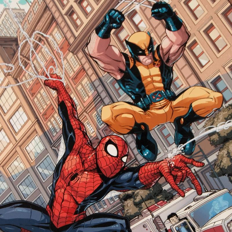 A piece of comic book history, this limited edition piece from art originally drawn by Nicholas Bradshaw, depicts Wolverine and Spider-Man. Nick Bradshaw is a Canadian artist, primarily involved in the comic book industry. He started out as penciler for Army of Darkness comics from Dynamic Forces. Currently, he is working for Marvel Comics on a variety of titles, most recently Wolverine and the X-men. "Astonishing Spider-Man and Wolverine #1" is an extremely limited edition giclee on canvas by Nicholas Bradshaw presented by Marvel Comics, hand signed by the great Stan Lee and numbered out of only 10! This piece has been custom framed and ready to hang. Includes Certificate of Authenticity! Measures approx. 25" x 34" (with frame); 18" x 27" (image).