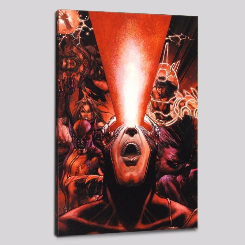 A piece of comic book history, this limited edition, from original art by Simone Bianchi, depicts Cyclops, Wolverine, beast and other X-Men characters. Known for his use of ink wash in his work, Simone Bianchi is an Italian comic book artist famous for his X-Men Unlimited artwork. "Astonishing X-Men #30" is a limited edition giclee on canvas by Simone Bianchi presented by Marvel Comics! This piece comes gallery wrapped and ready to hang. Includes Certificate of Authenticity! Measures approx. 18" x 27" (image). Retail Price $500.00. PRICE INCUDES FREE SHIPPING IN THE U.S. - SHIPPING WILL BE ADDED TO YOUR INVOICE FOR ALL BUYERS OUTSIDE OF THE U.S.