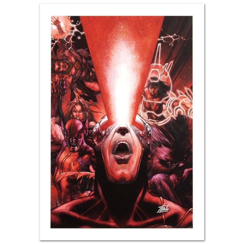 A piece of comic book history, this limited edition piece from art originally drawn by Simone Bianchi, depicts Cyclops, Wolverine, beast and other X-Men characters. Known for his use of ink wash in his work, Simone Bianchi is an Italian comic book artist famous for his X-Men Unlimited artwork. "Astonishing X-Men #30" is an limited edition giclee on canvas by Simone Bianchi presented by Marvel Comics, numbered and hand signed by the great Stan Lee! Includes Certificate of Authenticity! Measures approx. 18" x 27" (image).