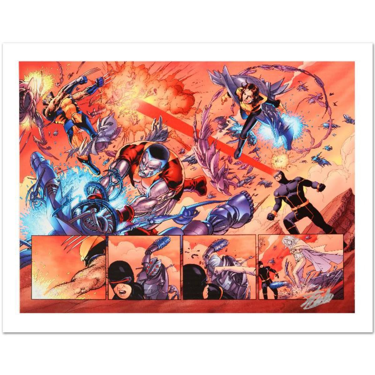 A piece of comic book history, this limited edition, from original art by John Cassaday, depicts an action-packed scene. In 1997, shortly after his entrance into the world of comic book art, John Cassaday began to work Marvel Comics, working primarily on X-Men/Alpha Flight. He has also worked on Captain America, Secret War, and Union Jack. "Astonishing X-Men N12" is a limited edition giclee on canvas by John Cassaday presented by Marvel Comics, numbered and hand signed by the Great Stan Lee (1922-2018)! Includes Certificate of Authenticity! Measures approx. 24" x 18" (image). Reference #: 187008.