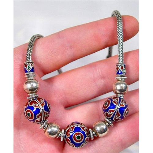The FINEST in the World of ENAMEL sterling silver jewelry. Simply a stunning necklace adorned with incredible handcrafted enamel with a length of 16" and a gram weight of 56.8. The enamel beads have a diameter of 16mm and for those not familiar with metric 25mm=1". A priceless piece of jewelry that comes with our highest recommendations.