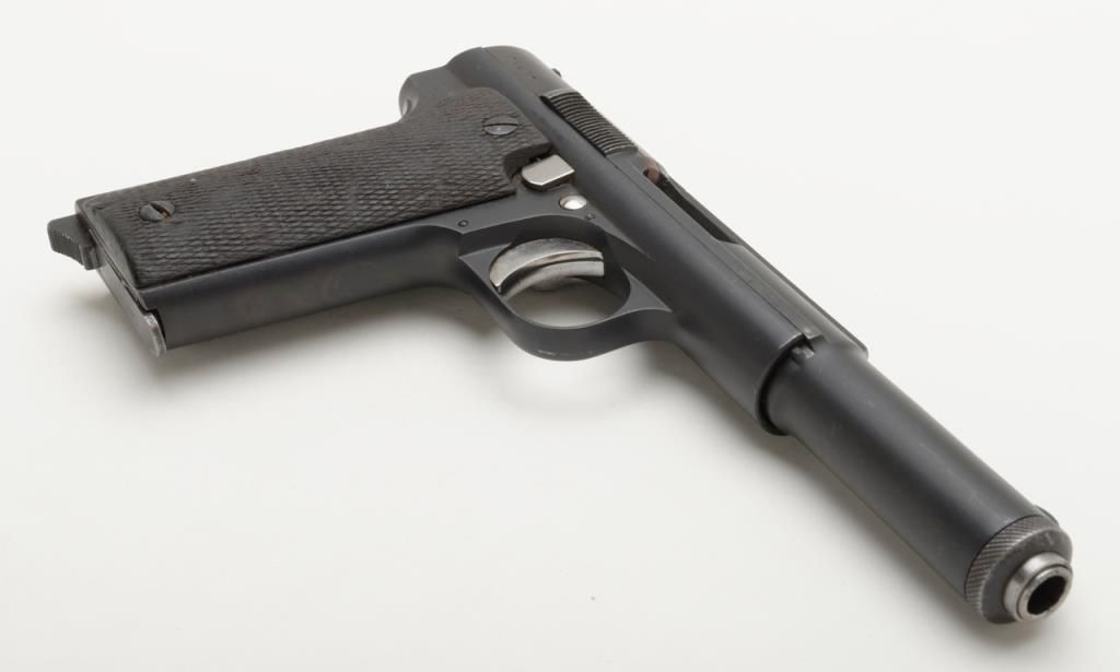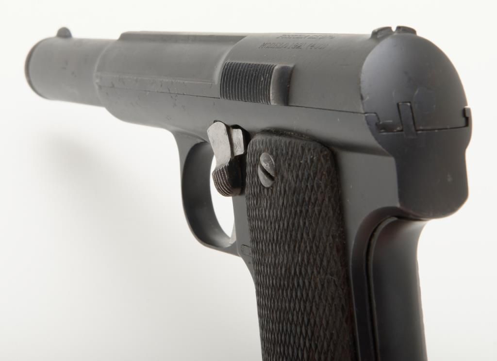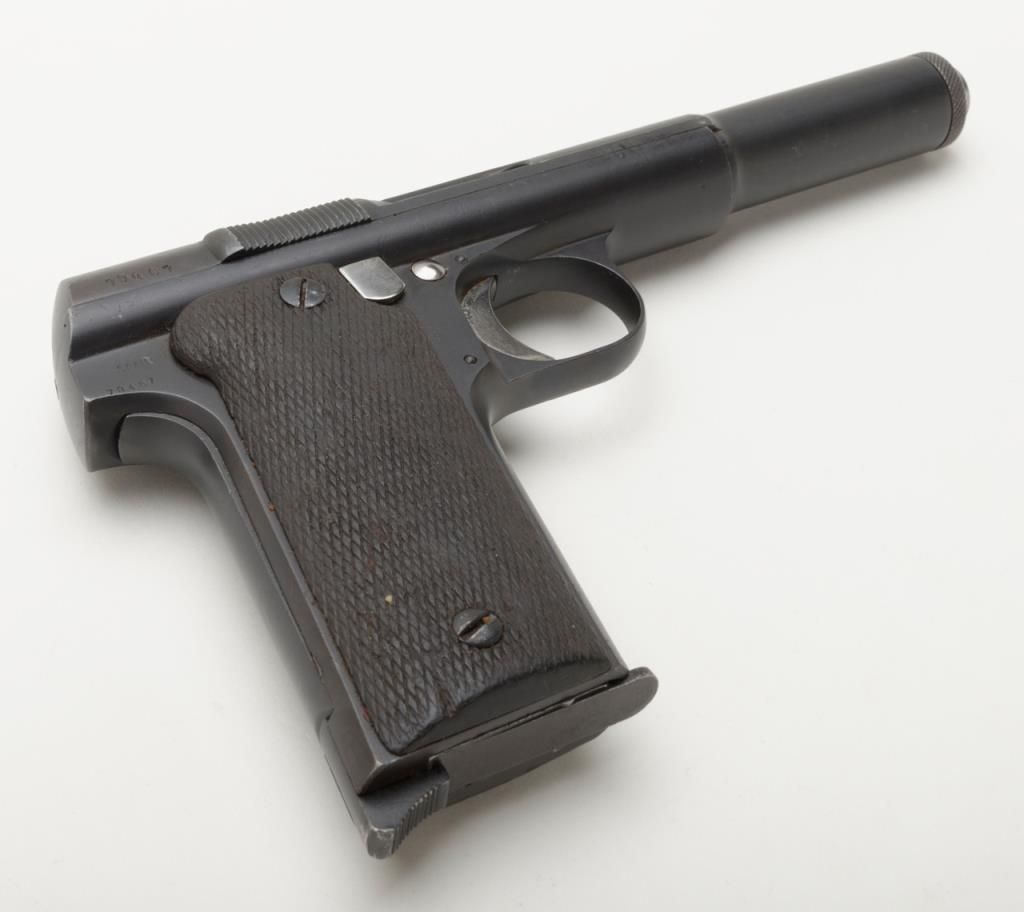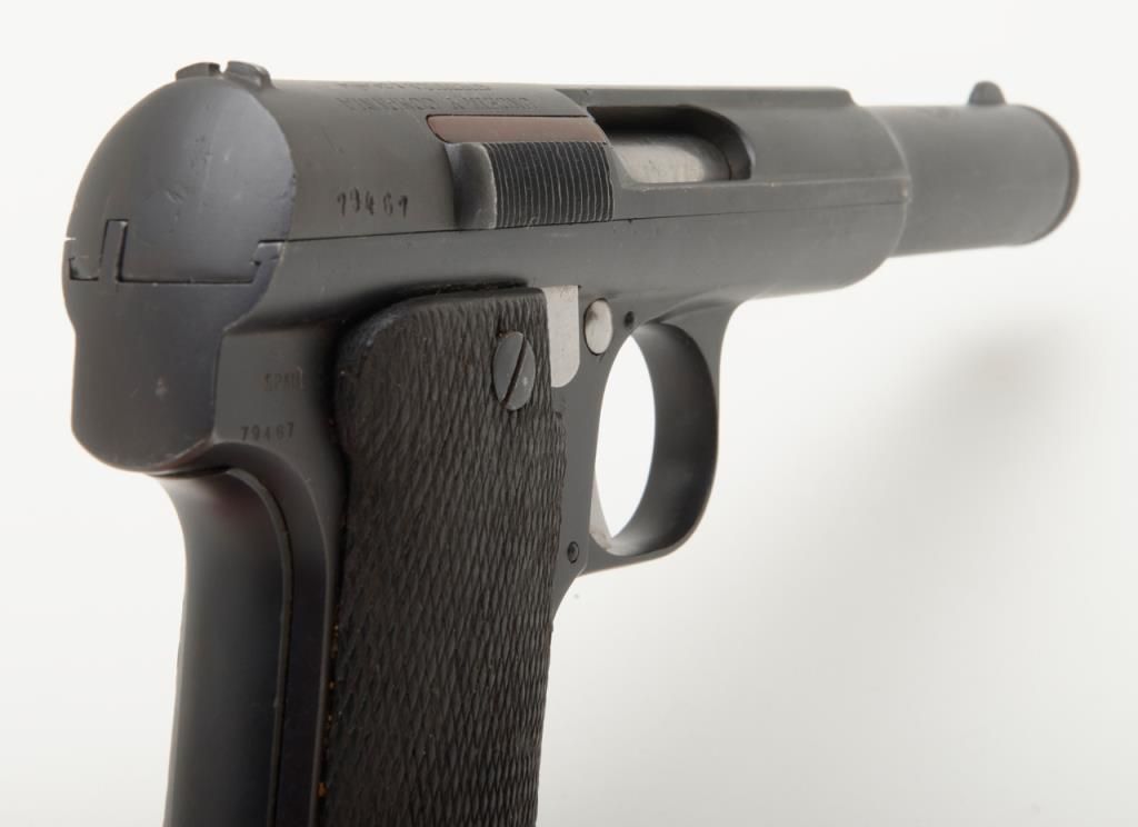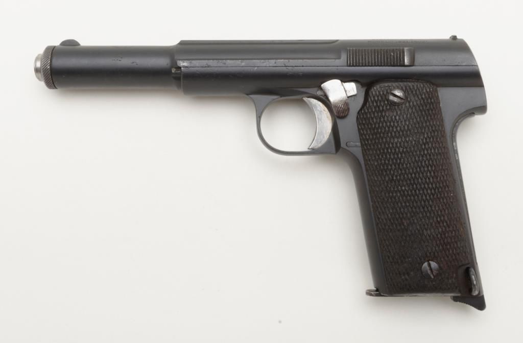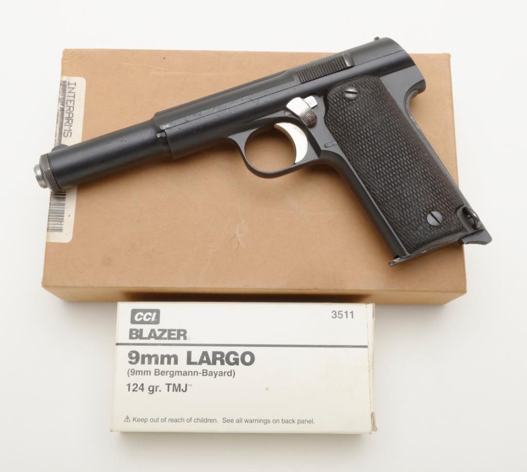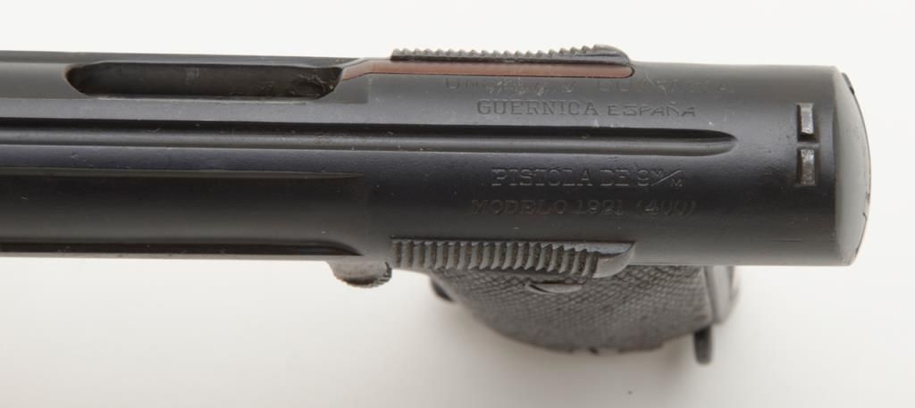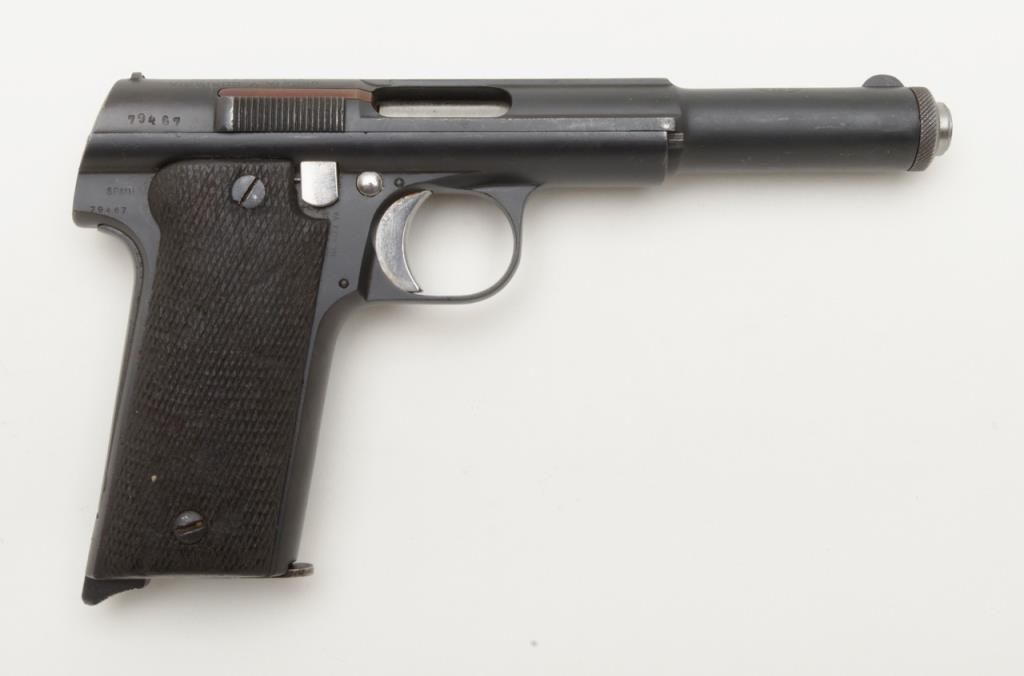 Astra Model 1921/400 semi-auto pistol, 9mm cal., import-marked, 5-3/4” barrel, re-blued finish, checkered wood grips, #79467 in overall good condition with a good bore, action, markings and grips. (C&R/PPT). Est.: $150-$300.