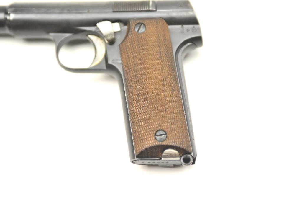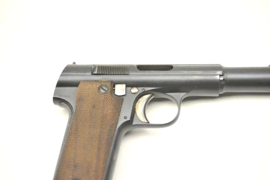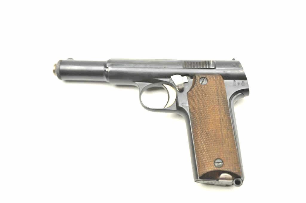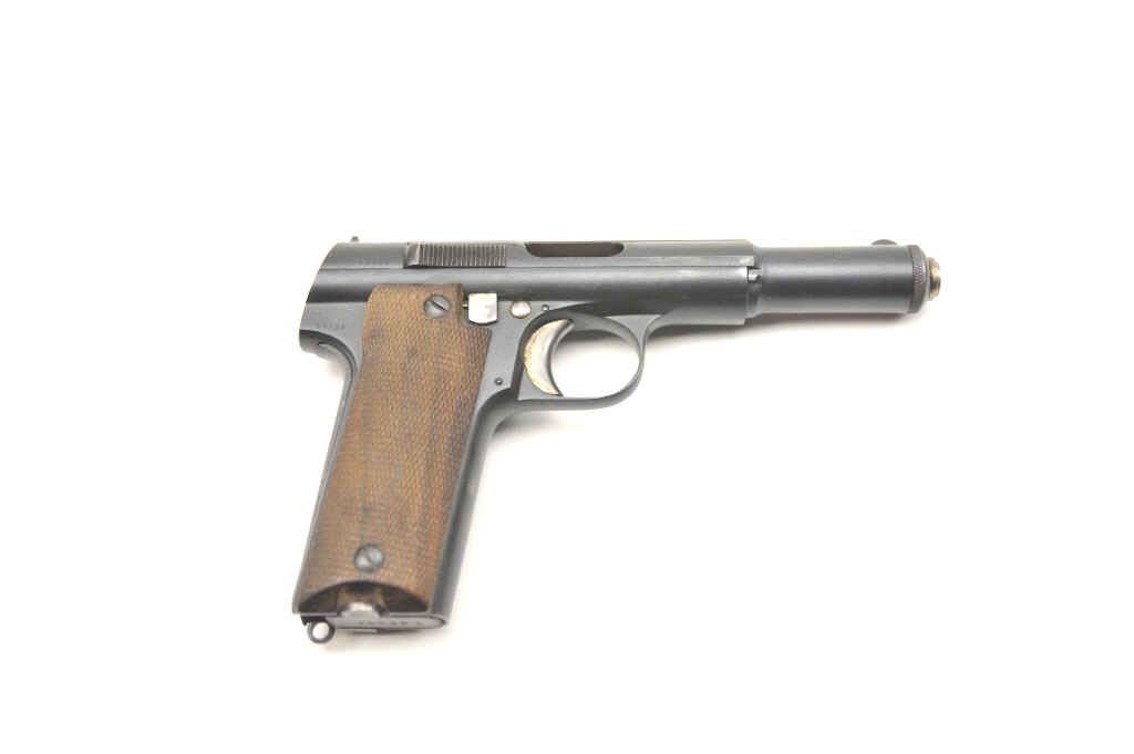 Astra Model 600/43 “Water” Pistol in 9mm Luger, S/N 58766. Very good to near fine condition with 95%+ toning original blue with near fine checkered wood grips. The magazine is Astra marked and numbered 58766(Matching). Spanish proofs only. Bright bore and mechanically sound and tight. (C&R/PPT) Est.: $300-$600