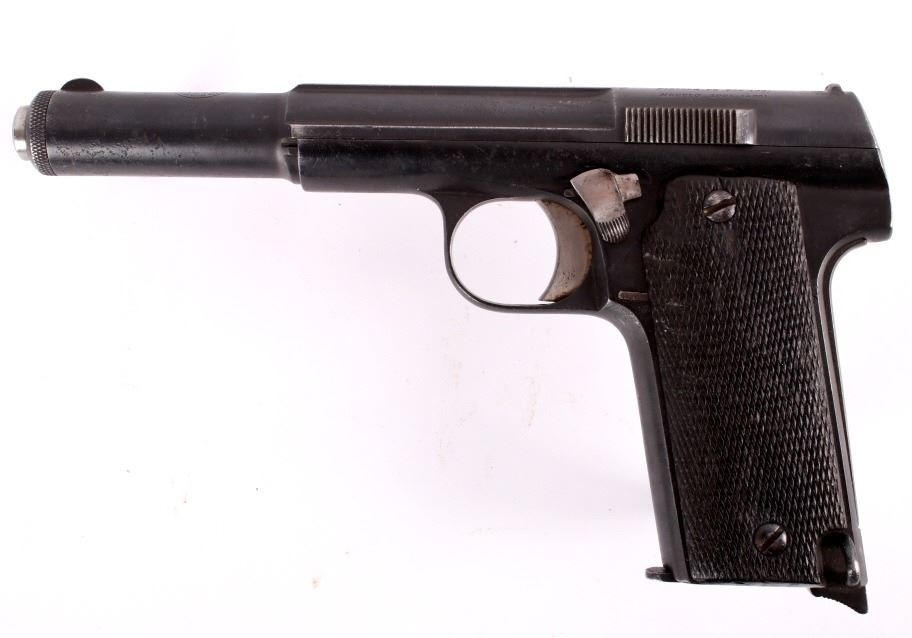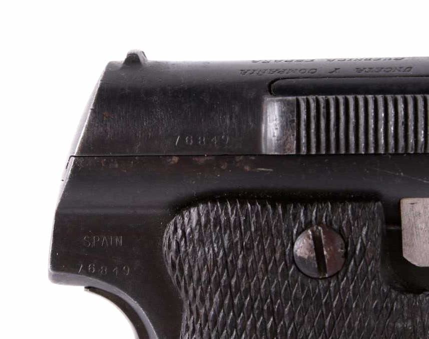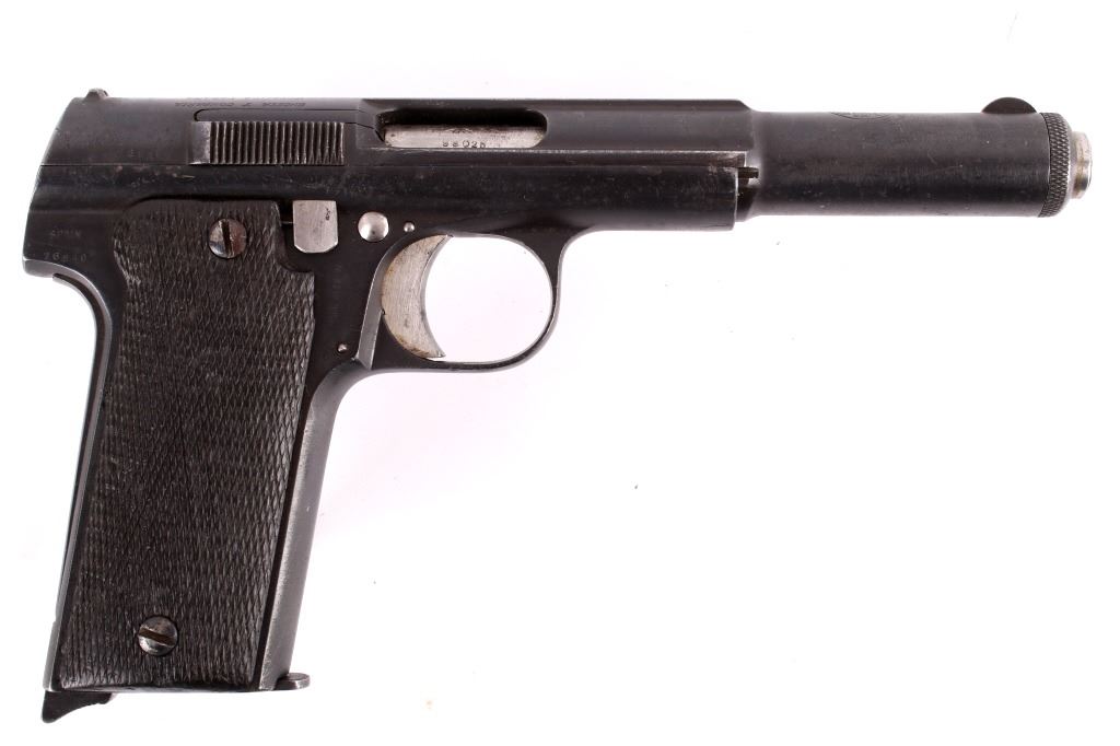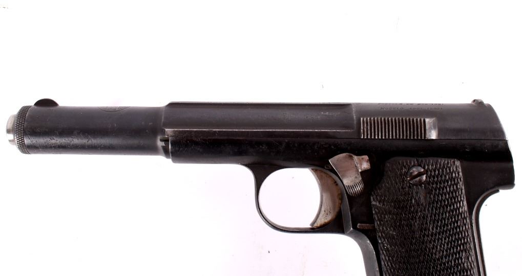 Included in this lot is an Astra The Astra modelo 400 is a Spanish service pistol produced by weapons manufacturer Astra-Unceta y Cia SA. as a replacement for the Campo-Giro 1913/1916, which had also been chambered in 9mm Largo. It was the standard issue sidearm in the Spanish Army during the Spanish Civil War and also saw service in Germany during World War II. This pistol has a 4.5" blue'd round barrel marked "Astra" on the top of the barrel tip and "Unceta Y Compania Guernica Espana - Pistola De 9mm (38) Modelo 1921 (400)." The pistol has a blue'd receiver and black plastic grips. The pistol is in working condition but the barrel shows corrosion from use. Rifling is still present. Serial Number: 76849. This firearm qualifies as a Curio & Relic Long Gun, and requires FFL Transfer or NICS Background Check.