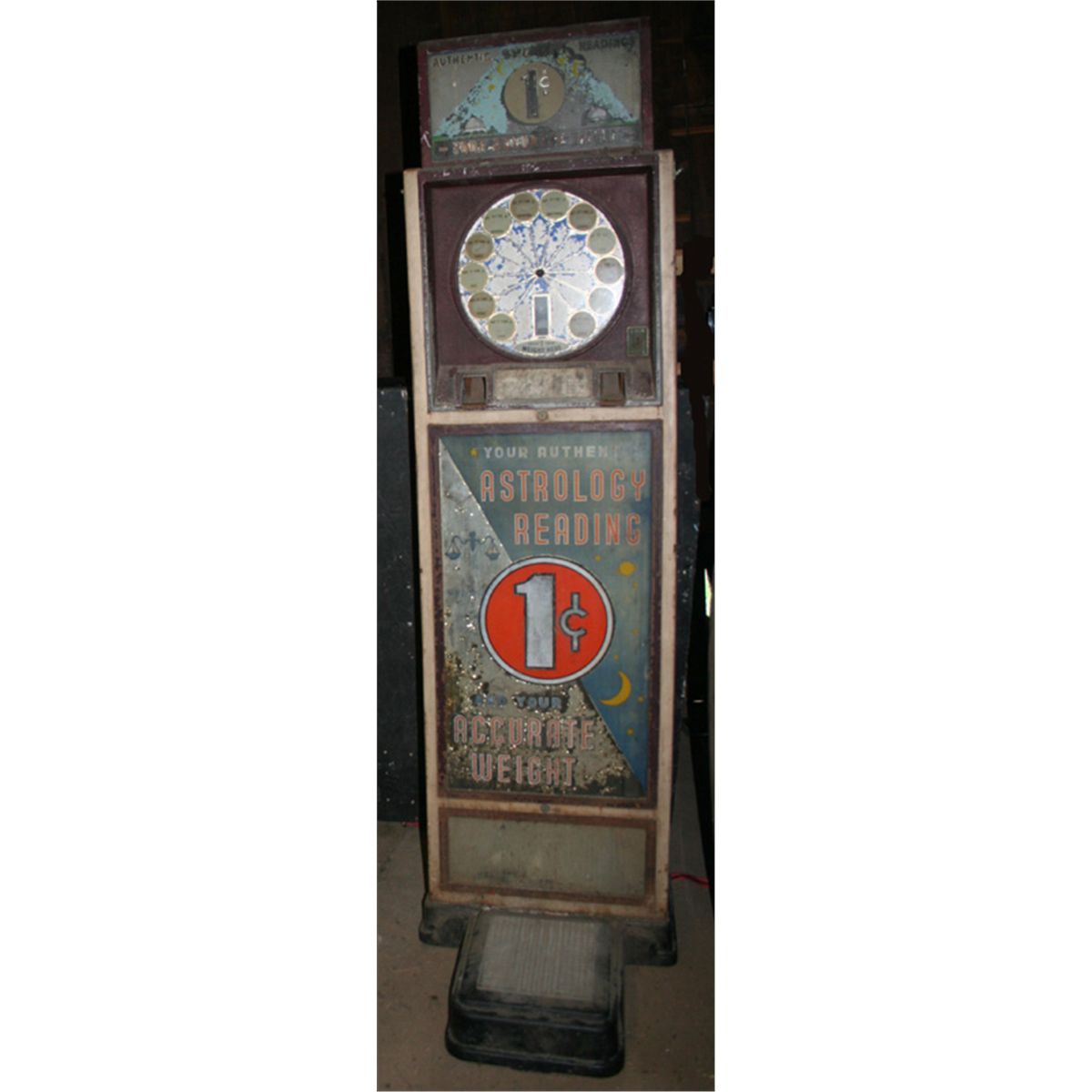 Astrology Reading Scale - one cent - Large and heavy. A complicated mechanism. Glasses faded in places, but readily legible. Appears to be complete.