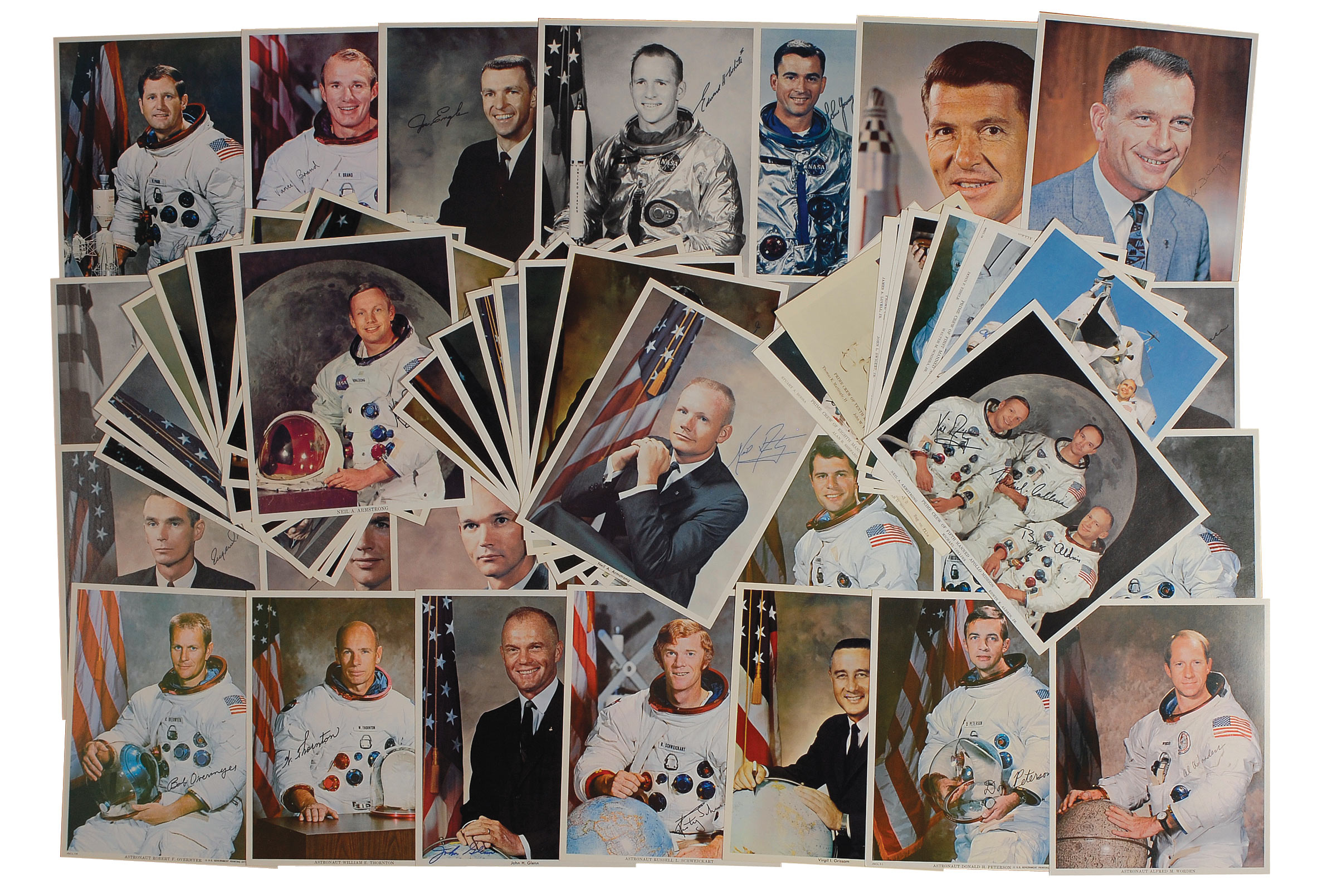 Collection of 78 NASA photos, all 8 x 10 and 10 x 8, including many color, all bearing autopen signatures of the respective astronaut(s) pictured. Signers include: Neil Armstrong, Ed White, John Young, Wally Schirra, Deke Slayton, Gordon Cooper, Charles Conrad, Gene Cernan, Dave Scott, Michael Collins, John Glenn, Gus Grissom, Alan Shepard, Harrison Schmitt, Edgar Mitchell, Charlie Duke, Buzz Aldrin, Alan Bean, and the Apollo 11crew. In fine condition. A complete list is available online at rrauction.com.