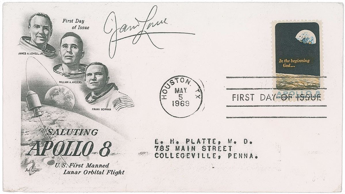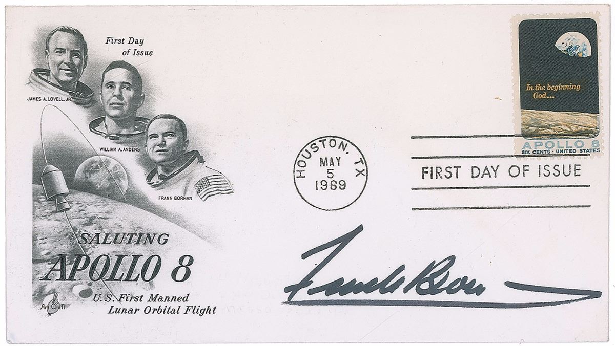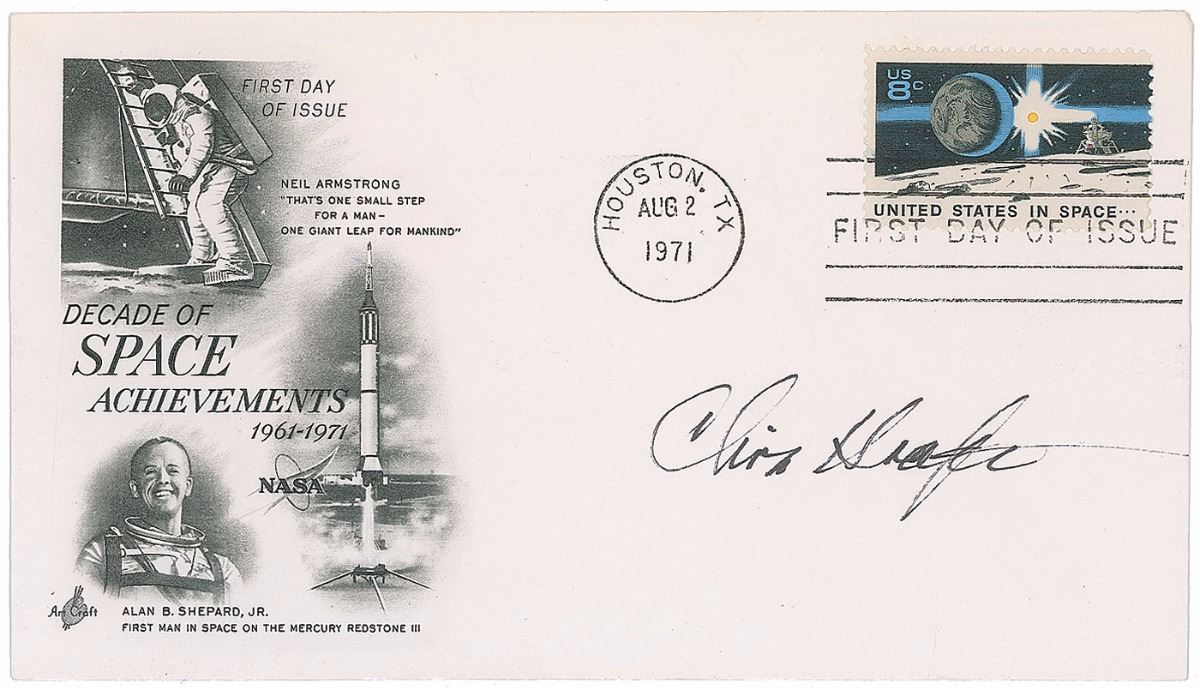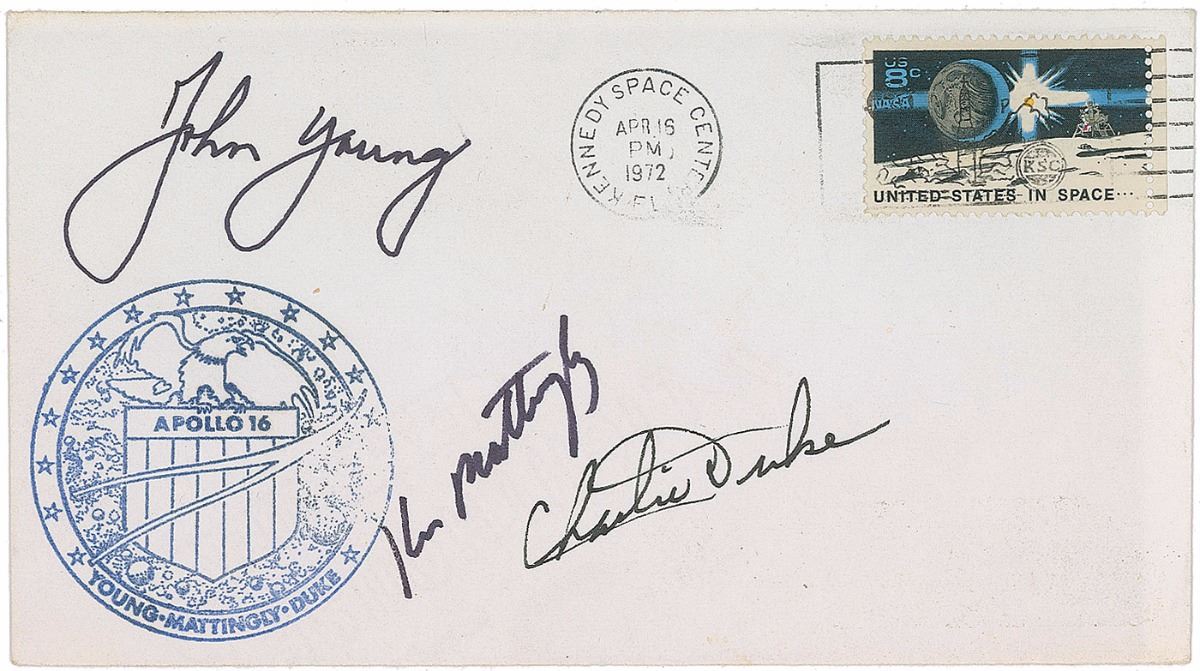 Nice collection of five FDCs and commemorative covers, each signed in felt tip or ballpoint by at least one astronaut or NASA figure, including: Frank Borman; Dave Scott; James Lovell; Charlie Duke and Ken Mattingly (also bearing a Young autopen); and Chris Kraft. In overall fine condition.