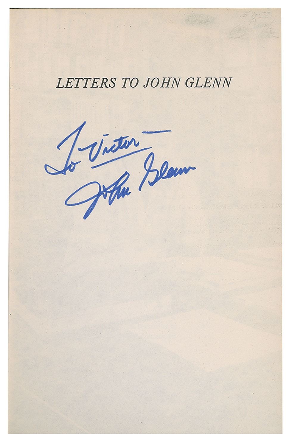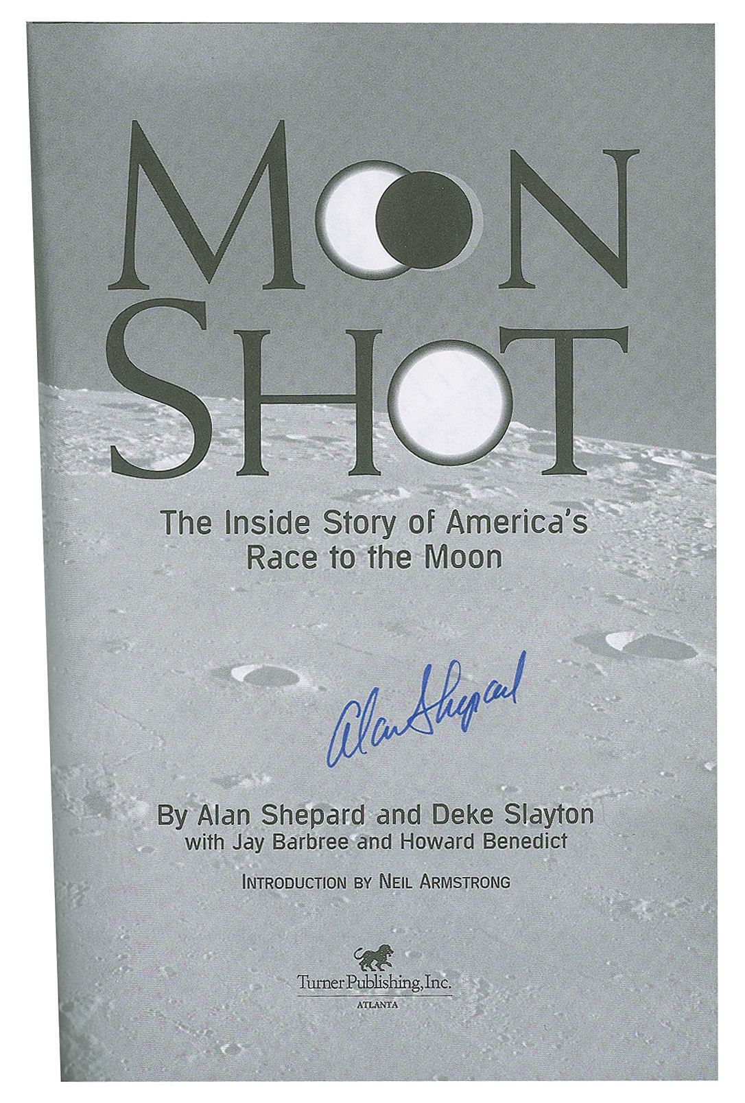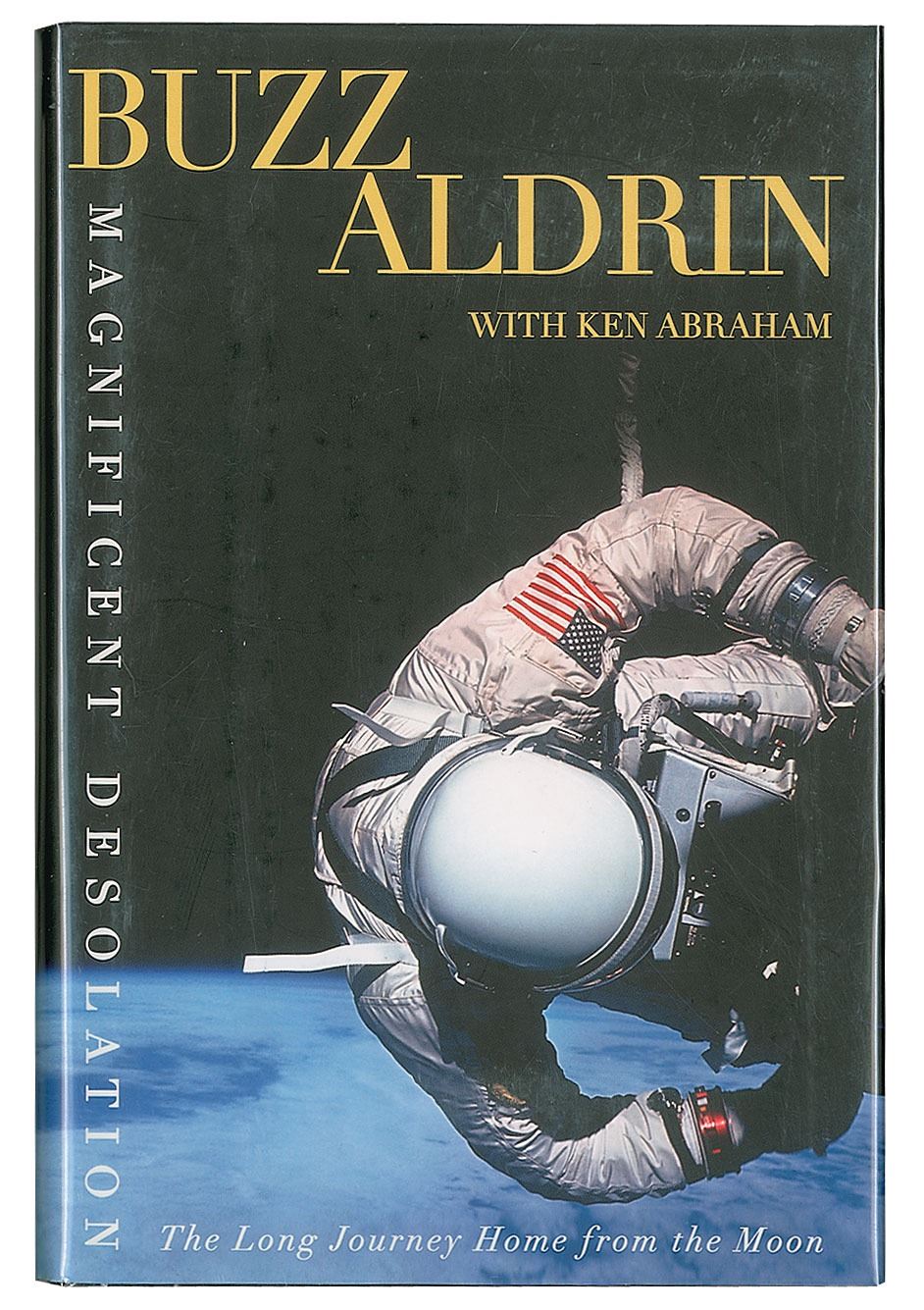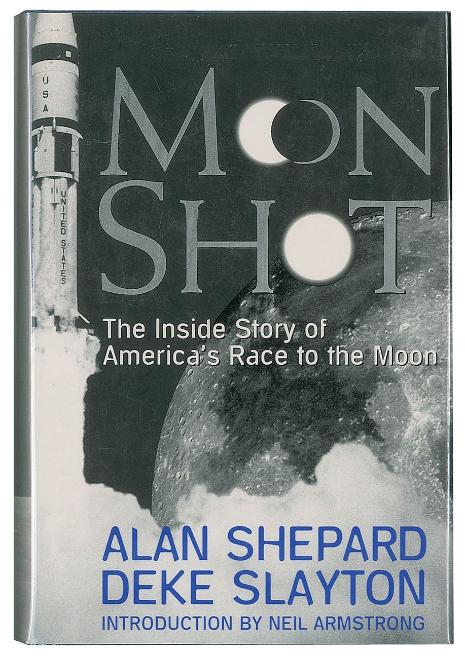 Three first edition books, all hardcover with dust jacket, each signed on an opening page in ink or felt tip by a NASA astronaut, including: Buzz Aldrin (Magnificent Desolation), John Glenn (ins, Letters to John Glenn), and Alan Shepard (Moon Shot). In overall fine condition, with cracking to the front hinge of the Glenn book.
