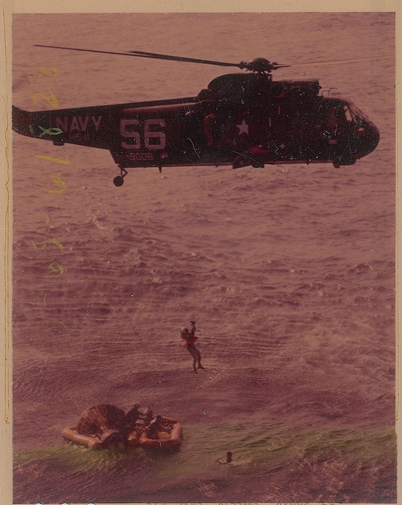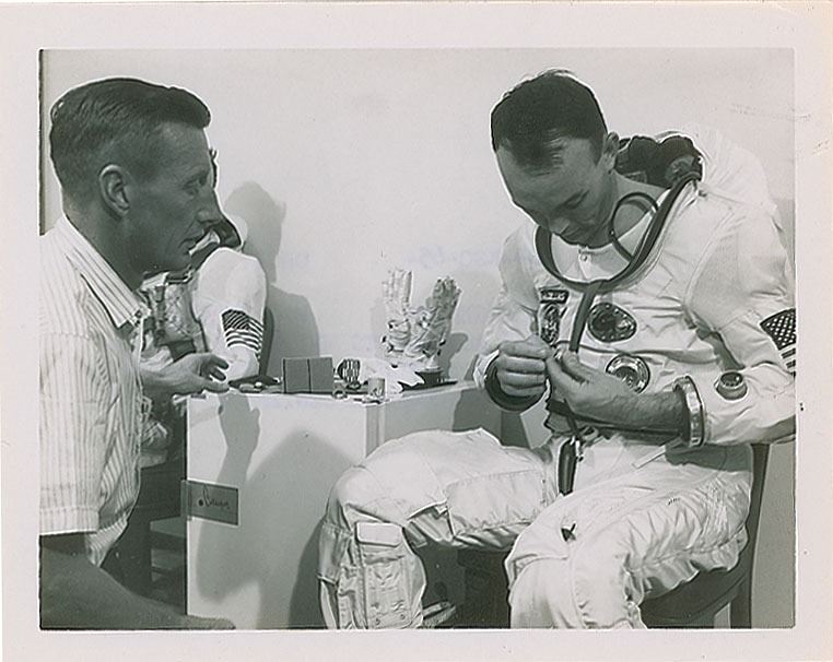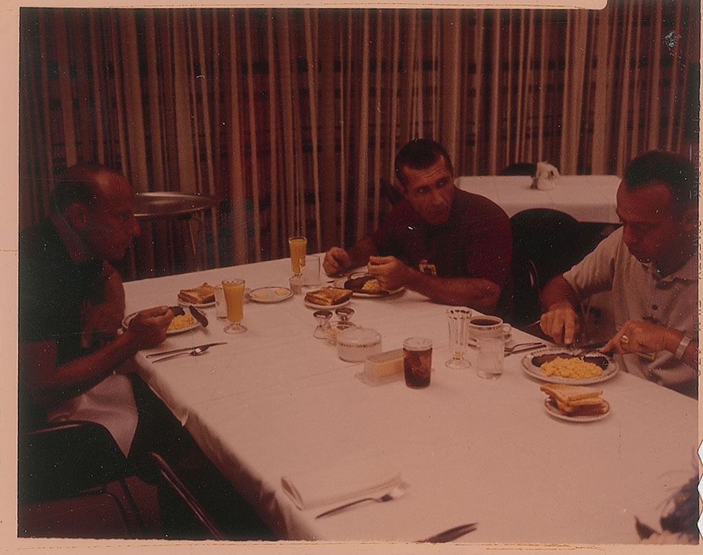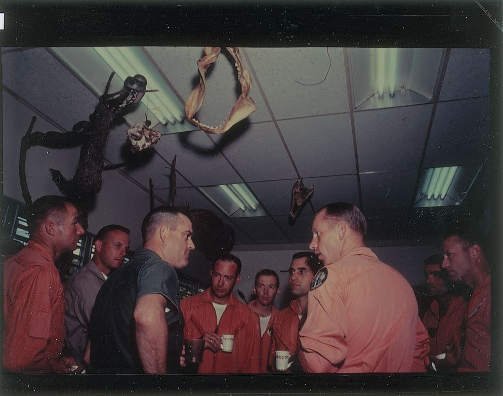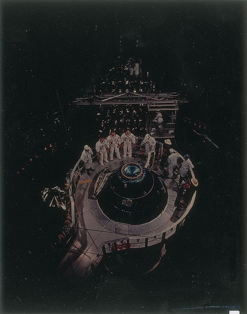 Documenting the intensity and scope of America’s three-headed space program, the photographs include astronauts undergoing pre- and post-flight medical testing, as well as simulations that tested performance in zero-gravity chambers and centrifuges. Of considerable interest is the large assortment of photos documenting the Jungle Survival School, a summer training course in the Panamanian jungle in 1963 and 1967, where astronauts were trained to build shelters, find food and water, and identify venomous snakes. The archive also features a wealth of images recording the laborious process of flight preparation, such as suit and equipment tests, insertion, and egress and recovery procedure, with photos also offering a glimpse into more mundane routines, like individual and team portraits, preflight breakfast, and relaxing in the White Room lounge chairs. Amazing images of liftoff, the Earth, and the desolate lunar surface are also distinct highlights of the collection.
