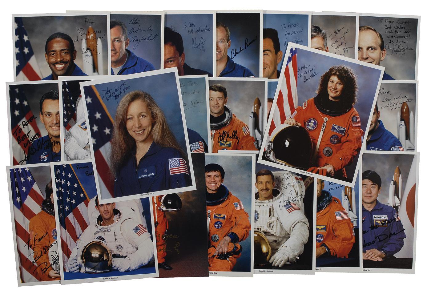 Twenty-five color 8 x 10 NASA photos, each signed in ink or felt tip by the respective astronaut pictured, with most adding a short inscription. Signers are: Clayton Anderson, Gregory Johnson, Duane Carey, Charles Precourt, Michael Lopez-Alegria, Terry Wilcutt, Mamoru Mohri, Leland Melvin, Lee Archambault, Paul Lockhart, Patrick Forrester, Jeff Ashby, Franklin Chang-Diaz (2), John Olivas, Piers Sellers, Jim Reilly (2), Takao Doi, Ken Cockrell, Bonnie Dunbar, Dan Burbank, Jim Newman, Marsha Ivins, and Susan Helms. In fine condition. Pre-certified Scott Cornish and RRAuction COA.