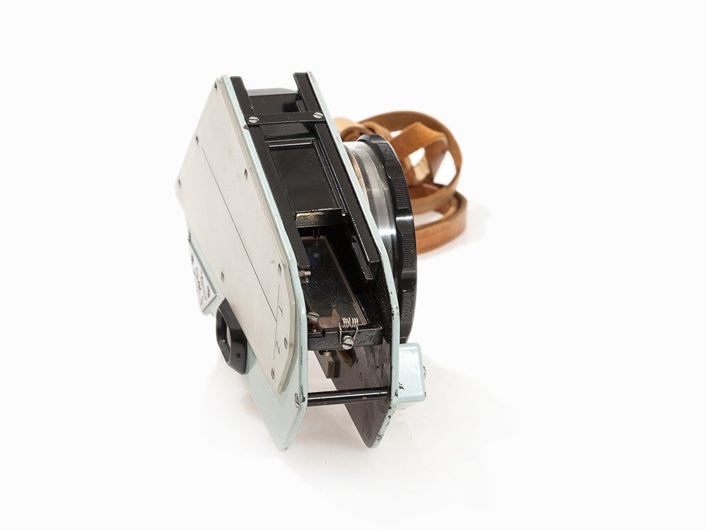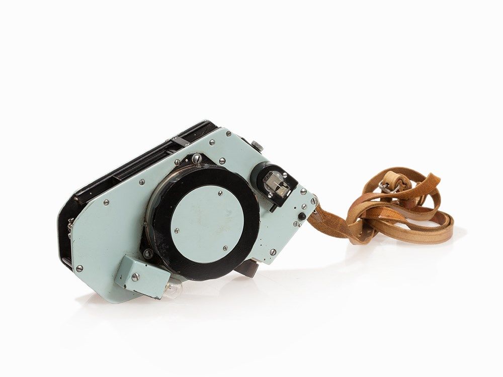 This is an angle measuring device of the Russian aerospace for astronomic navigation, especially for calculation of flight angles. It was personally used by the Soviet cosmonaut Valentina Tereshkova. It is the model CMK 3 numbered 2416305 (badge on the device). The device still possesses the original leather strap. It consists of a turning wheel that is marked with degree values. Once the zero point on the scale is adjusted to a certain height, the orbs’ and targets’ location can be measured. In 1963, Tereshkova was the first woman to fly into space and remained the only woman in space until Svetlana Savitskaya’s flight in 1982.