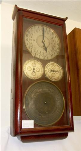 Pendule astronomique d'origine tchèque, cadran argenté divisé en 24 heures avec indication de 365 jours, mois, semaines, saisons, lunaisons et position de tous les astres, env. 1900
