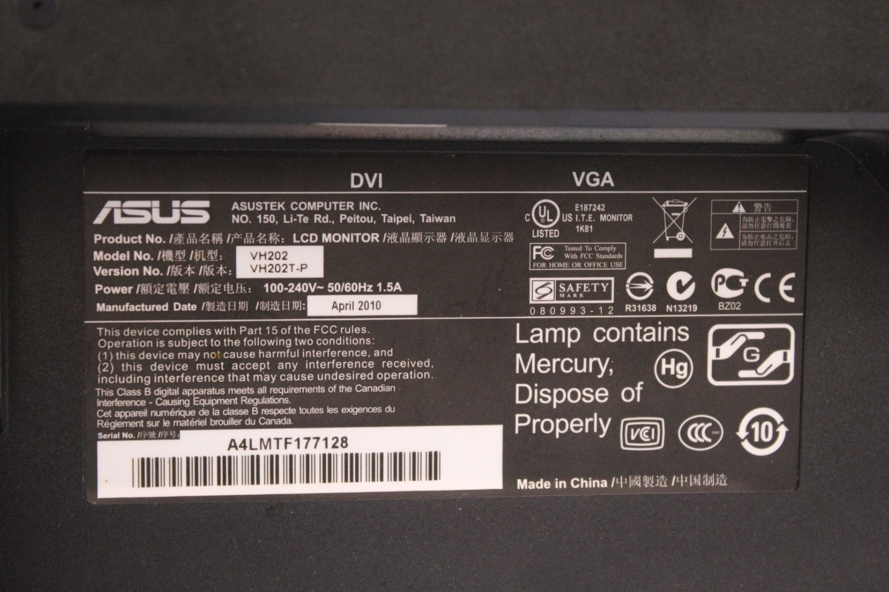 Asus 20" Monitor Screen - Powers On