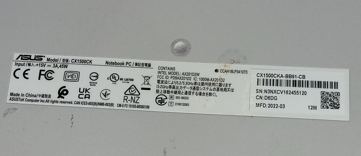 Asus Chrome Notebook | Model CX1500CK | Untested As Is Shipping only in Canada