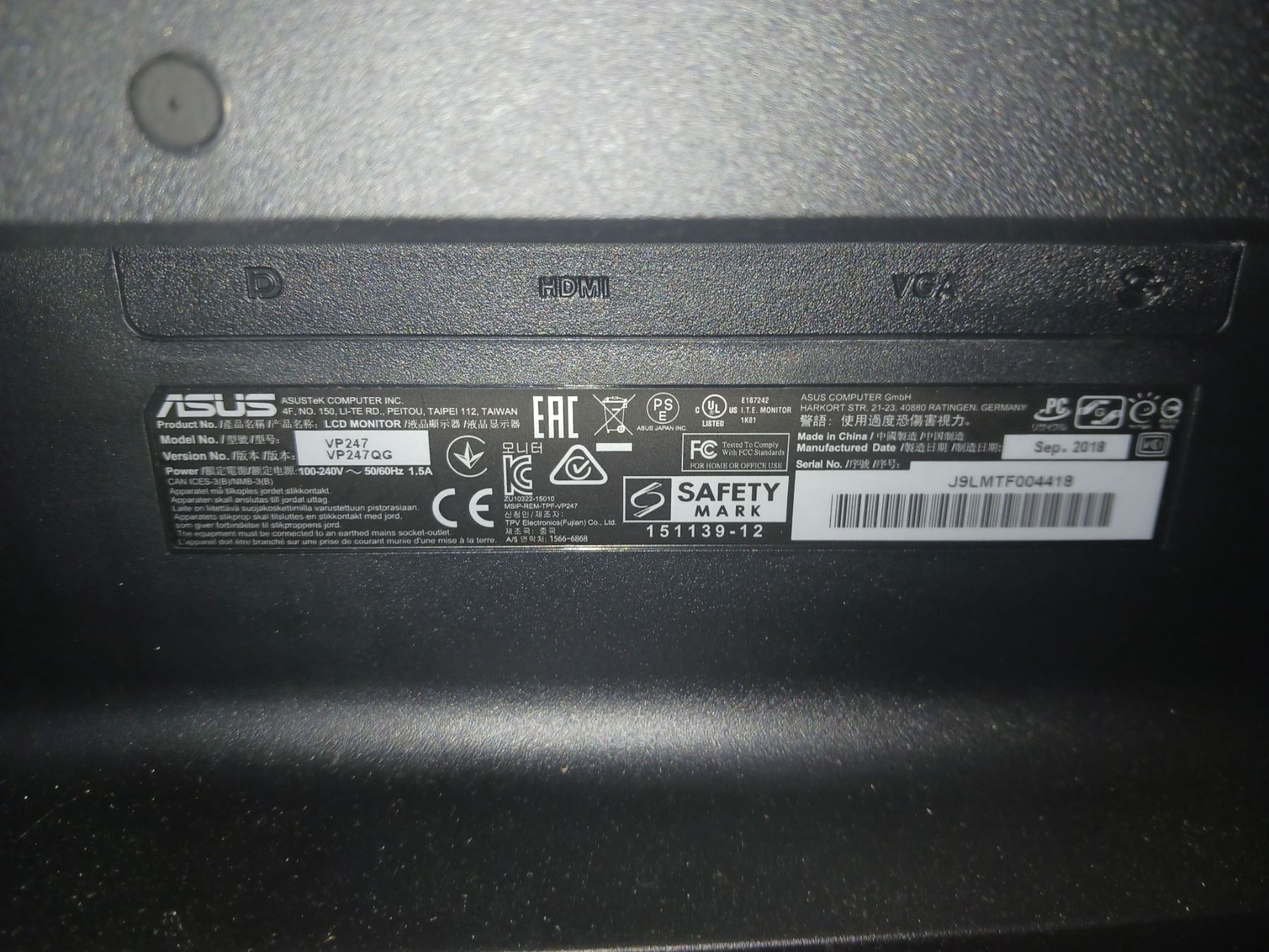 Asus Monitor - Model VP247