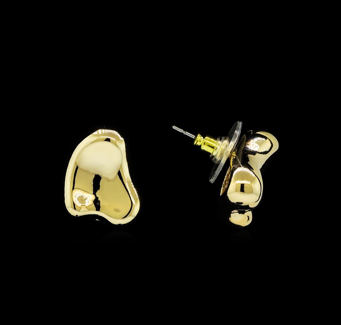 High end designer jewelry. Asymmetric Nugget Post Earrings - Gold Plated. Gold Plated Stud Set. Gold. 1inch.