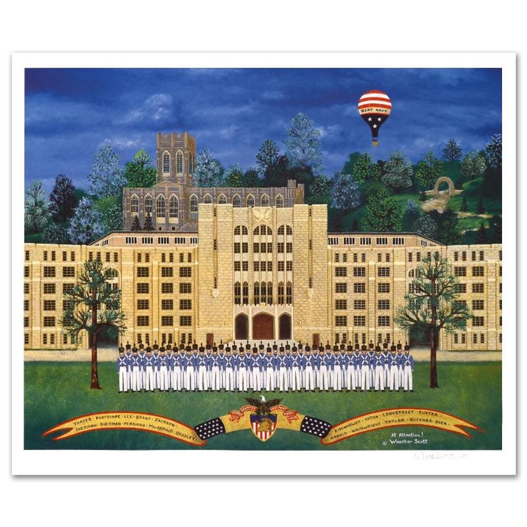 Cozy, down-home images of a bygone era when life was simpler - this is the feeling captured in the creations of one of the world's most recognized artists. "At Attention!" is a limited edition lithograph on paper, numbered and hand signed by Wooster Scott! Includes Certificate of Authenticity! Measures approx. 24.5" x 20.5" (with border), 22.5" x 18" (image)