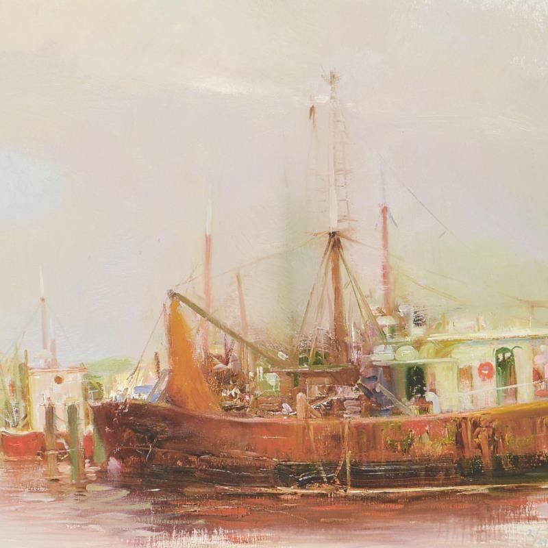 "At The Dock" is a limited edition giclee on paper by Pino (1939-2010). The piece comes numbered and is hand signed by the artist. Includes Certificate of Authenticity. Measures approximately 14" x 21"(image).