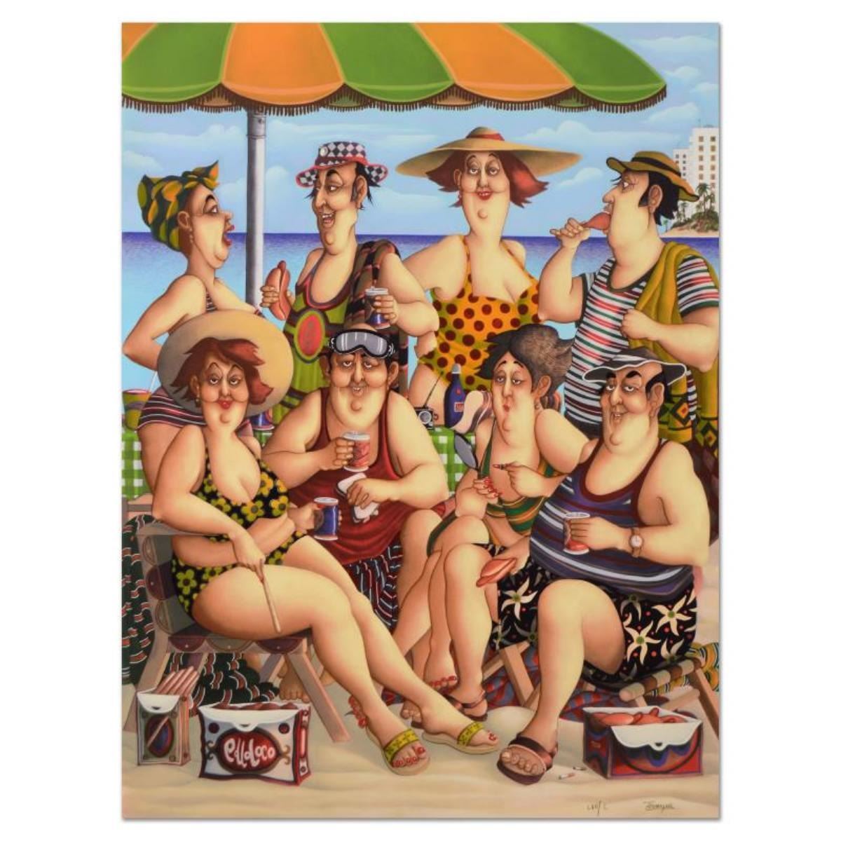 "At the Beach" is a limited edition serigraph on clay-board by Carlos Ferreyra, numbered and hand signed by the artist. Includes Certificate of Authenticity. Measures approx. 24" x 32" (image).