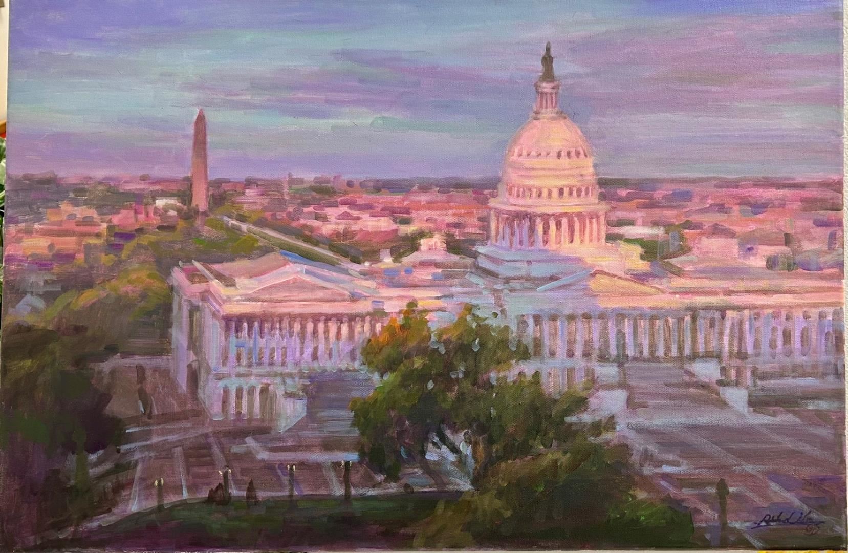 A stunning view of the US Capitol complex in DC. Richard Ho has created this 20x30" acrylic on stretched canvas. With COA