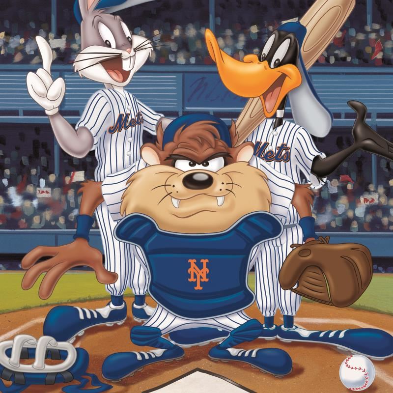 "At the Plate (Mets)" is a limited edition giclee on paper from Warner Bros. featuring iconic Looney Tunes characters in New York Mets MLB uniforms. It comes numbered, with hologram seal, and a Certificate of Authenticity! Measures approx. 16 x 20" (with border), 12" x 16" (image).