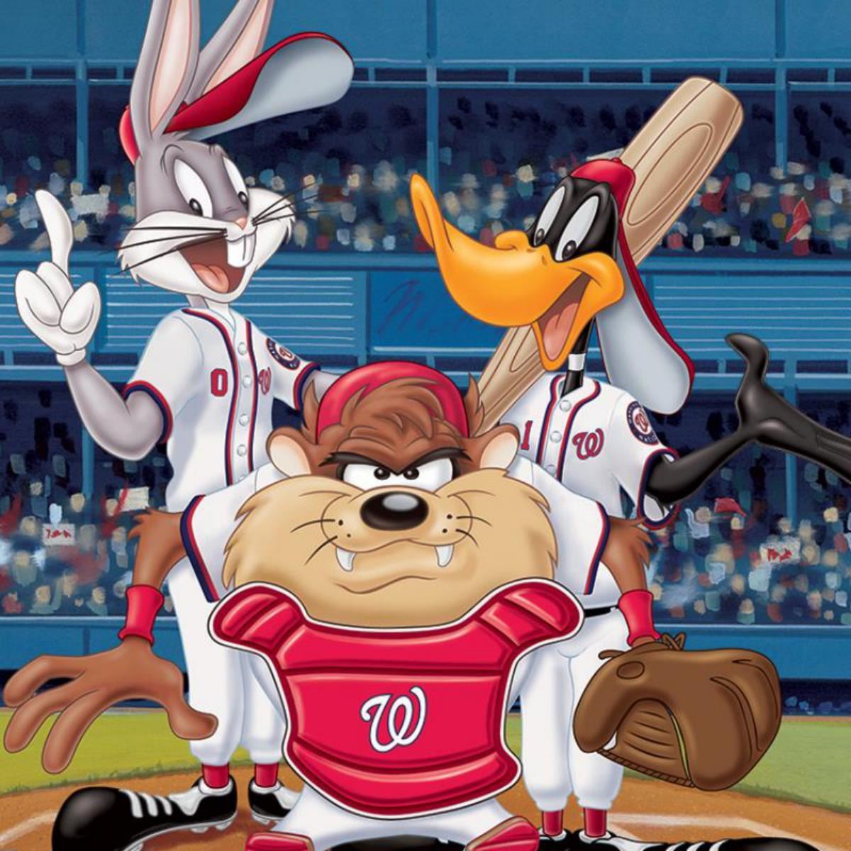 "At the Plate (Nationals)" is a limited edition giclee on paper from Warner Bros. featuring iconic Looney Tunes characters in 2019 World Series Champions, Washington Nationals MLB uniforms. It comes numbered, with hologram seal, and a Certificate of Authenticity! Measures approx. 16 x 20" (with border), 12" x 16" (image). Reference #: 238240.