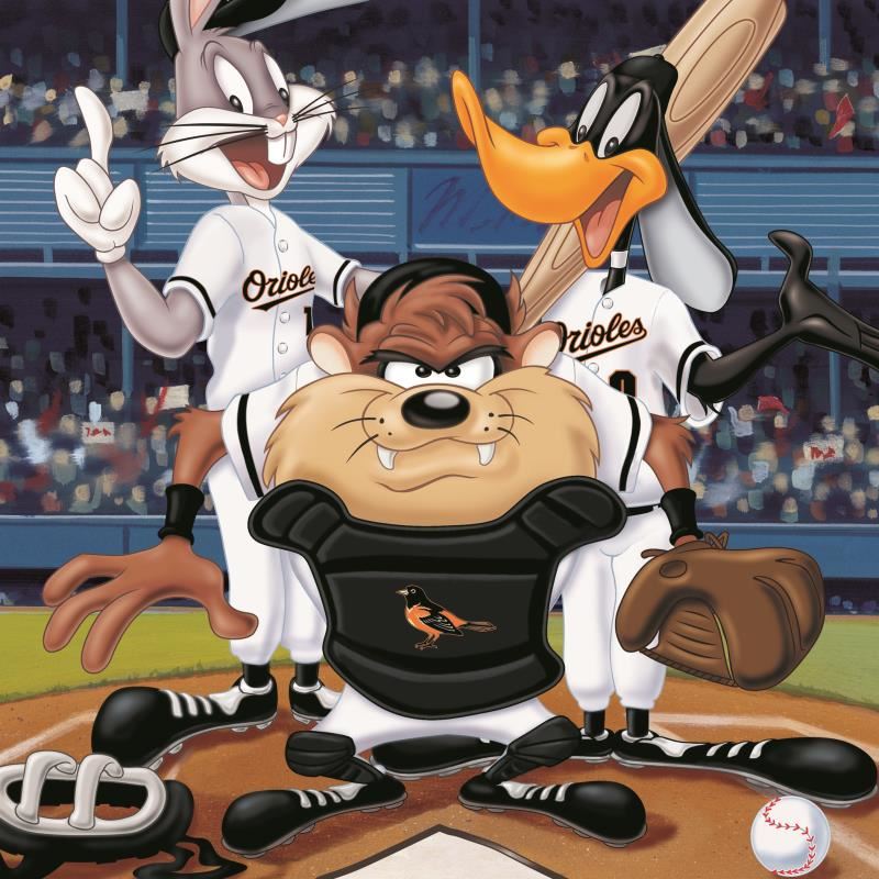 "At the Plate (Orioles)" is a limited edition giclee on paper from Warner Bros. featuring iconic Looney Tunes characters in Baltimore Orioles MLB uniforms. It comes numbered, with hologram seal, and a Certificate of Authenticity! Measures approx. 16 x 20" (with border), 12" x 16" (image).