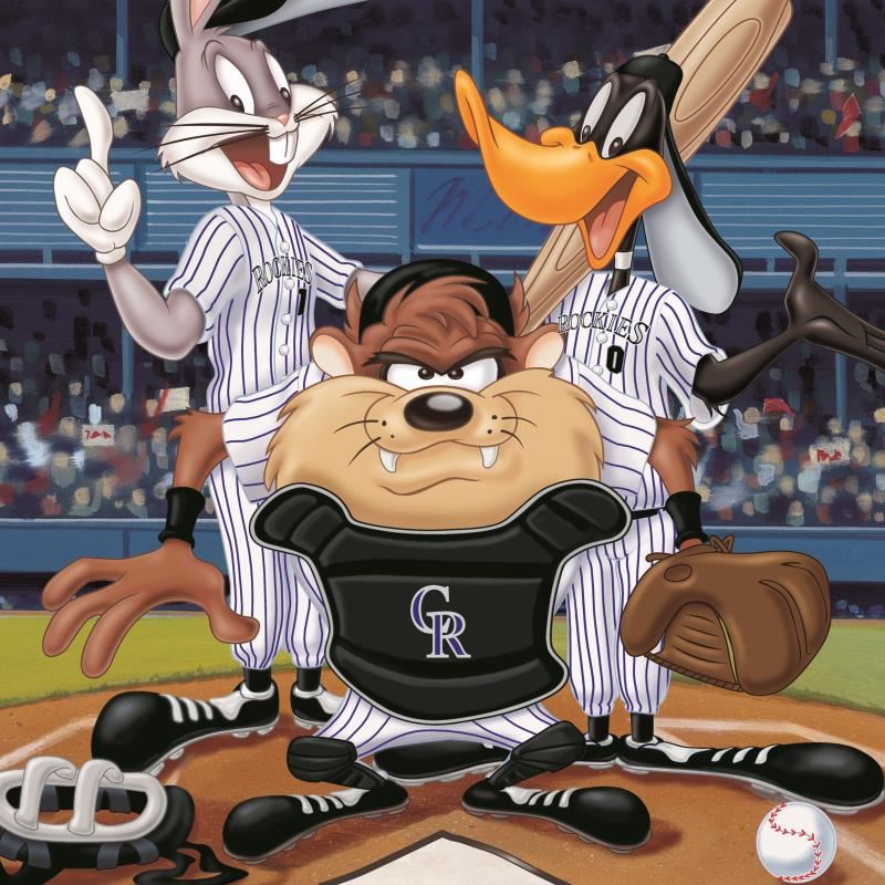 "At the Plate (Rockies)" is a limited edition giclee on paper from Warner Bros. featuring iconic Looney Tunes characters in Colorado Rockies MLB uniforms. It comes numbered, with hologram seal, and a Certificate of Authenticity! Measures approx. 16 x 20" (with border), 12" x 16" (image).